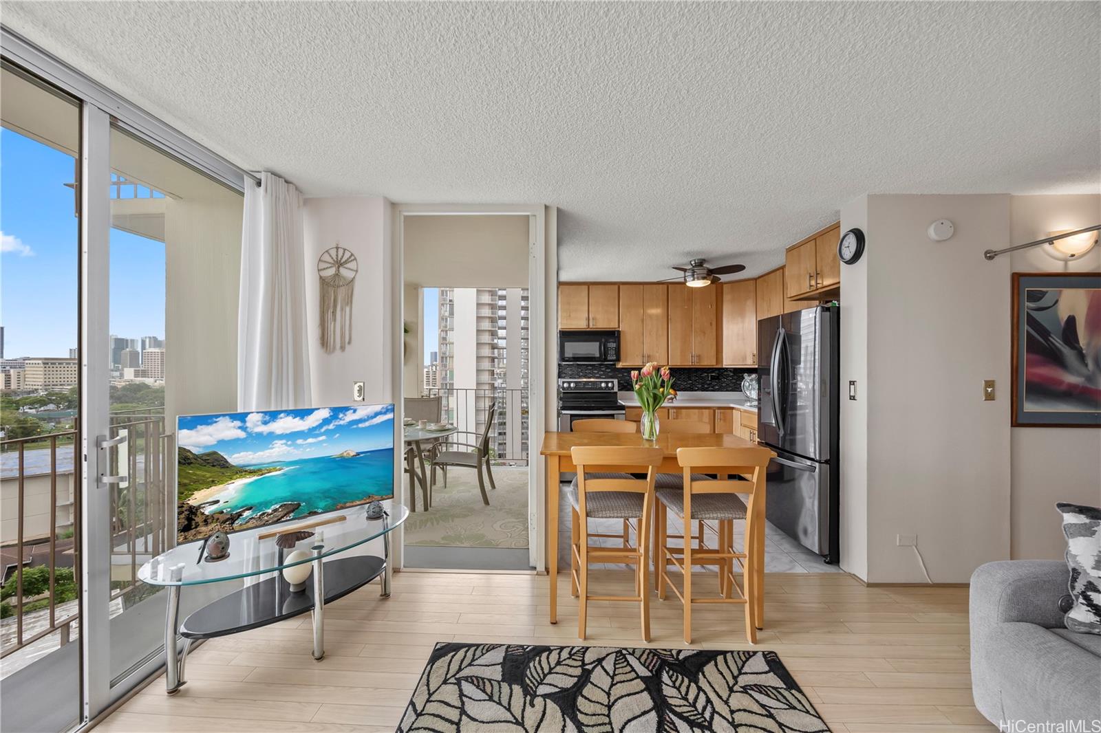 緑豊かなマキキ地区にある、広々とした居住空間を備えたアパートメント。広々としたベランダが、この静かなアパートメントの目玉です。領事館の高層階に位置するこのアイランドスタイルのユニットからは、街のスカイライン、鮮やかな夕日、そしてきらめく夜景を一望できます。開放的な間取りのキッチンとリビングエリアは、親密な集まりに最適です。広々とした2つのベッドルームからは、涼しい風とたっぷりの光が差し込みます。細部まで行き届いたメンテナンスが施されたこの住宅は、オーナーの誇りを感じさせます。ホノルルのランドマーク、ショッピング、レストランにも近く、専門家による管理が行き届いており、海水プールも完備しています。配管とエレベーターの改修工事は完了しており、現在予算内で改修工事が行われています。ご予約いただければ、すぐにご見学いただけます。
