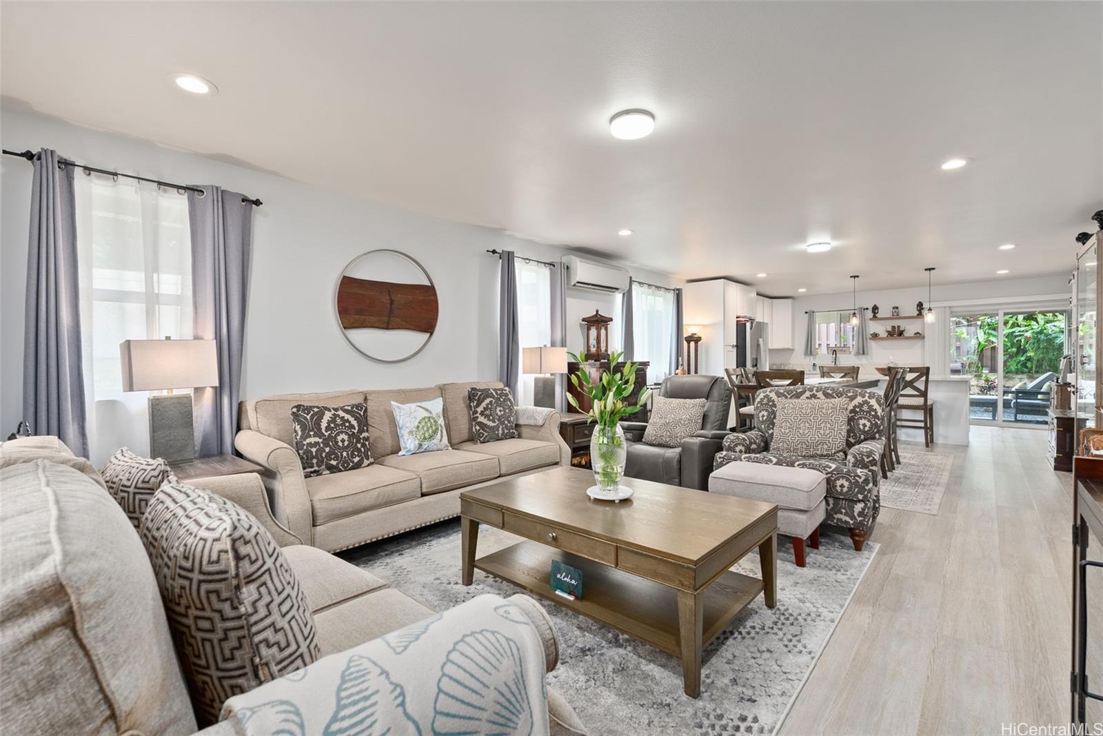 Welcome to this modern immaculately maintained luxury residence, positioned at the end of a quiet cul-de-sac offering refined design, privacy and contemporary comfort. This home features a modern spacious kitchen with stainless steel appliances, quartz countertops, and plenty of space for dining and entertaining. The living room flows seamlessly from the kitchen and dining area to create an open and inviting space for everyday living and enjoyment. The residence features 4 generously sized bedrooms, also a versatile suite with a private entrance, full bath and kitchenette - ideal for extended family, guests or rental option. There are six new split A/C systems for enhanced comfort. The backyard area offers a welcoming outdoor space designed for relaxation, and outdoor gatherings. Don't miss the opportunity to own this home nestled in the heart of Kaneohe minutes from Windward Mall, theaters and restaurants. Close to H-3, Marine Corps Base Hawaii, Camp Smith, Hickam Air Force Base and Pearl Harbor. FIRST OPEN HOUSE, January 18th, 2-5pm. SEE VIDEO LINK