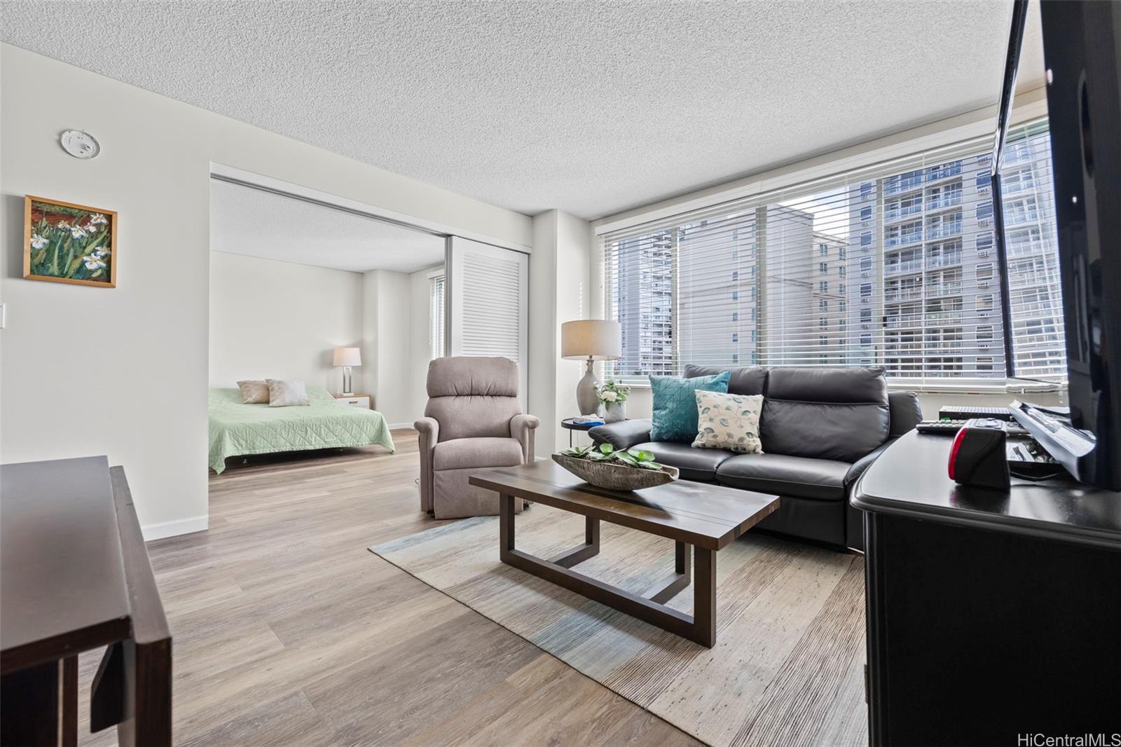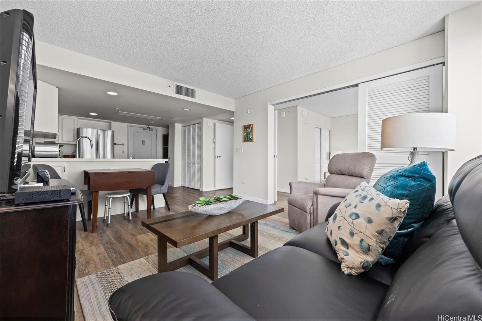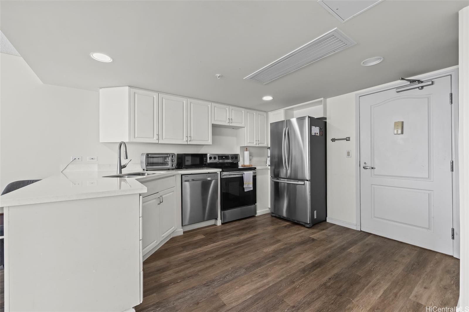 Peace and tranquility await you at One Kalakaua Senior Living! This 2 bed, 1 bath unit has been lovingly cared for over the years and features all the classic home comforts you could want: stainless steel kitchen appliances, vinyl plank flooring, a convertible living space with sleek sliding doors, and huge windows that let in tons of natural sunlight with city views of Honolulu. The large quartz counter top is perfect for home cooks to whip up a feast, and the ADA accessible bathroom is a huge plus with no step-in to the shower, and grab bars strategically placed throughout. The building itself offers a wide range of amenities including, but not limited to, a library, dining room, gym, music room, pool, cafeteria, and outdoor rocking chair seating area so you can enjoy a cold drink with your friends on warm summer days. Just minutes away from Ala Moana, Salt at Kakaako, and Ward Village. Must see to fully appreciate all this unit has to offer!