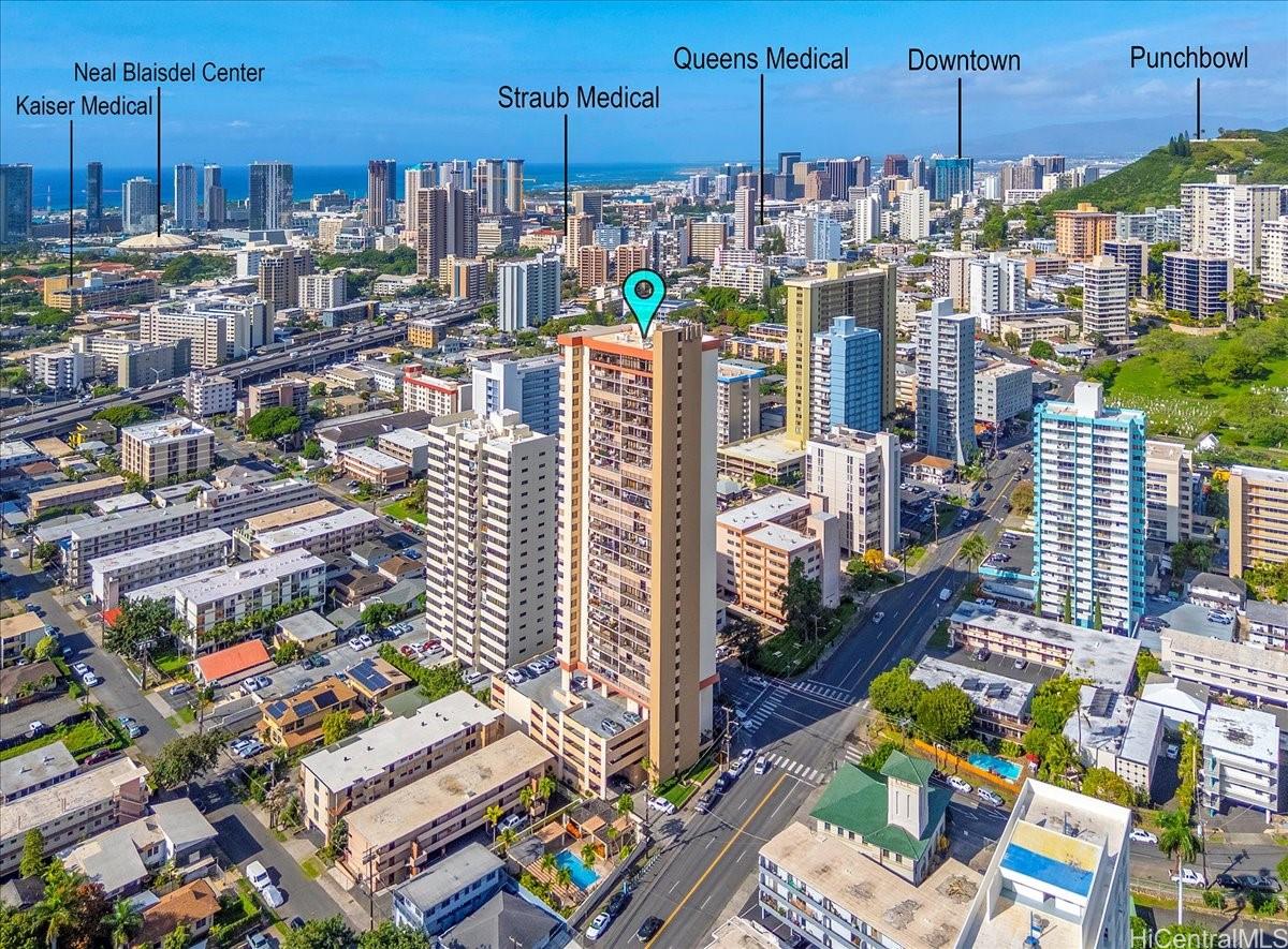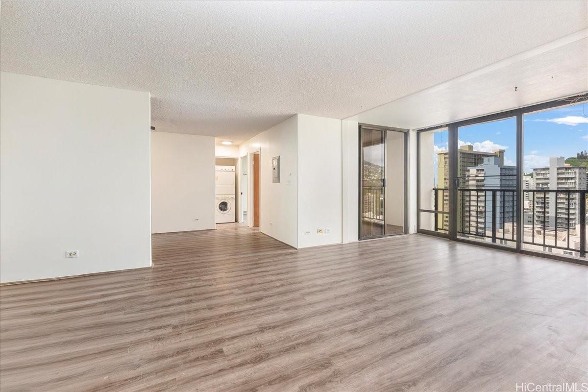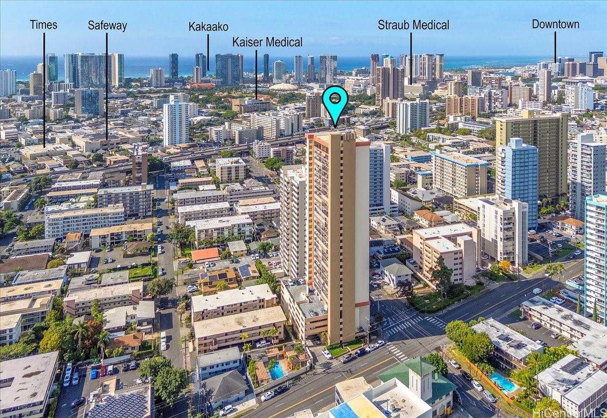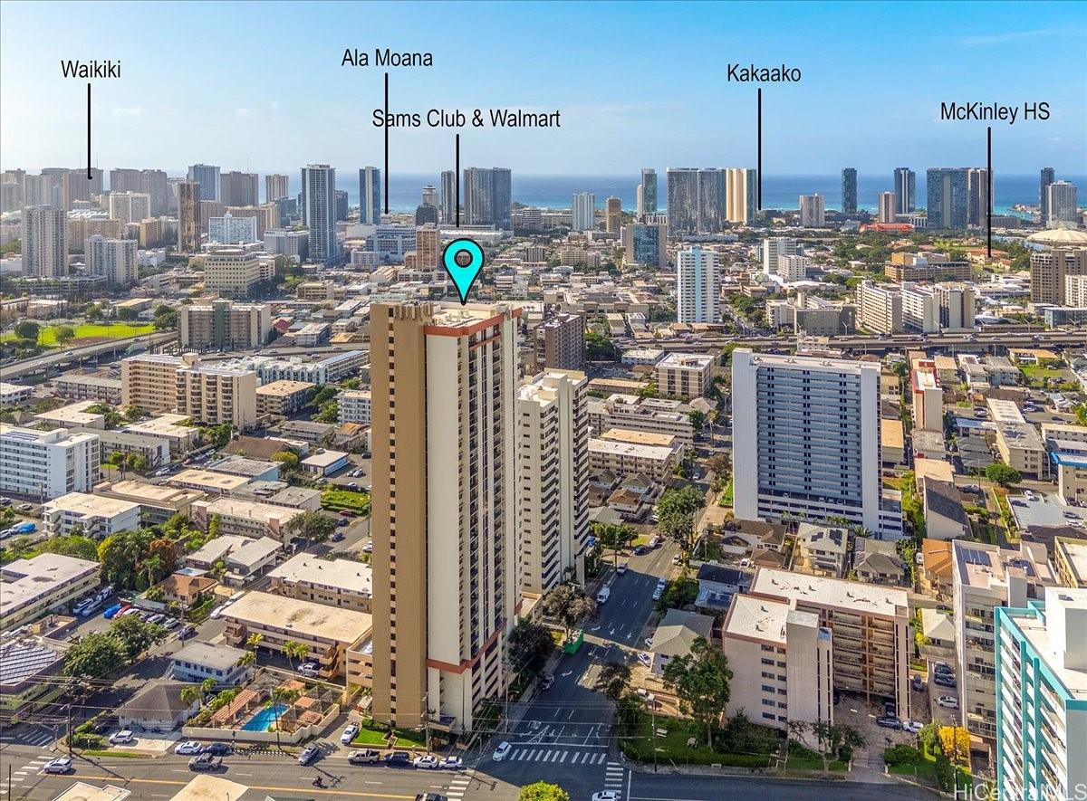 Welcome home to an urban high-rise oasis featuring sweeping city, mountain, and sunset views. This desirable 2-bedroom, 1-bath corner unit offers flexible living with a versatile bonus space - ideal for a home office or potential third sleeping area. Recently remodeled, the unit showcases brand-new kitchen appliances and a new electrical panel installed in July 2024, providing peace of mind and modern reliability. Unique to the ’06 stack, the home features an expanded entryway with additional storage, enhancing functionality. The original large lanai has been thoughtfully enclosed to create expanded interior living space. Enjoy refreshing cross-breezes and stunning vistas from this well-situated unit, conveniently located near freeway access, shopping, and dining - just minutes from Ala Moana Shopping Center. A rare opportunity to own a corner unit with low maintenance fees in a prime location. Schedule your private showing today!
