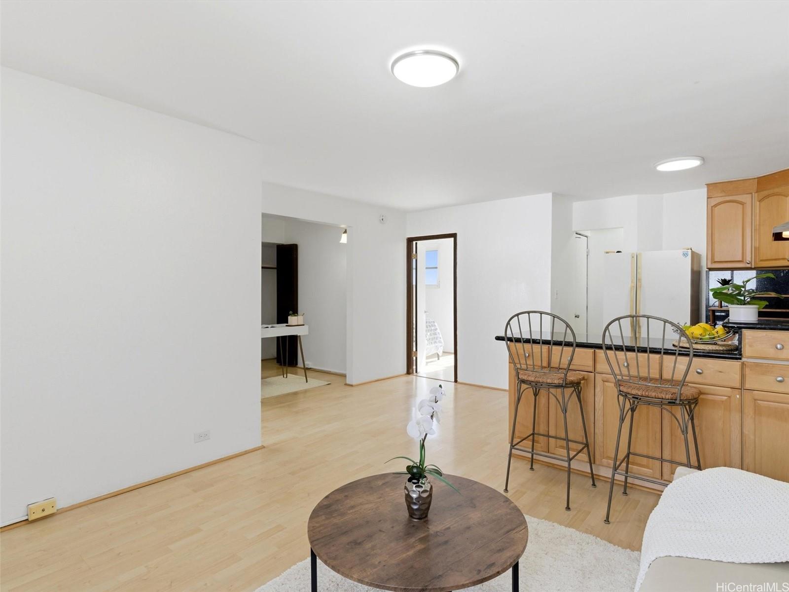 Live where convenience meets character in the heart of Makiki. This bright 2-bedroom, 1-bath walk-up includes a bonus room that’s perfect for a home office, creative studio, or potential 3rd bedroom. Fresh paint and modern lighting give it that clean, move-in-ready vibe — but what really sets this unit apart is that it’s the ONLY unit in the building with both a front and back entrance AND its own private back lanai. That’s rare, and it means more privacy, airflow, and indoor-outdoor living.