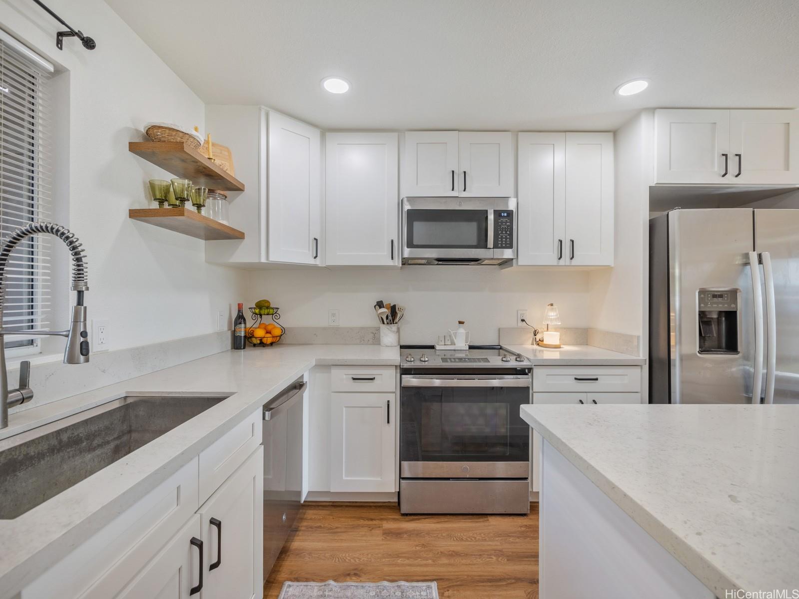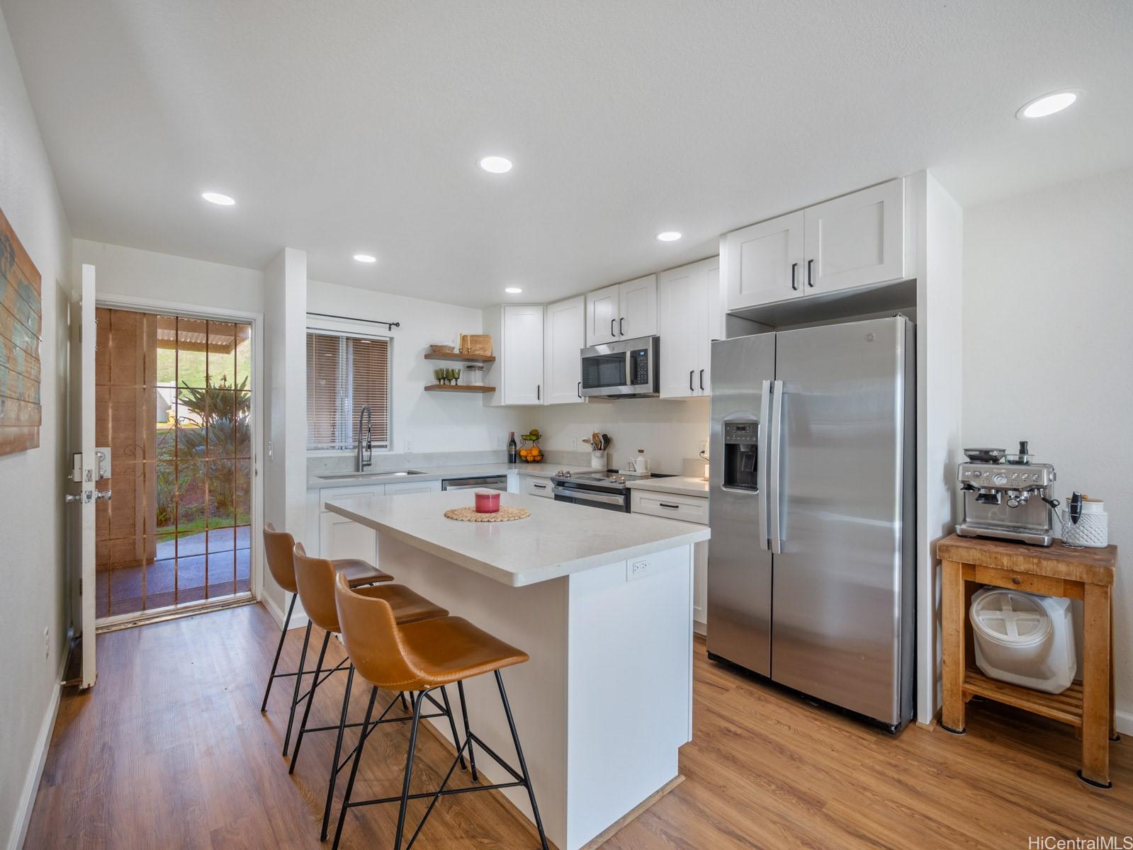 Beautifully upgraded townhome in breezy Makakilo. This ground-floor, two-bedroom, two-bathroom residence offers the perfect blend of comfort and convenience. The newly renovated kitchen features a completely redesigned floor plan that maximizes living space, complemented by new flooring and updated bathroom finishes throughout.
