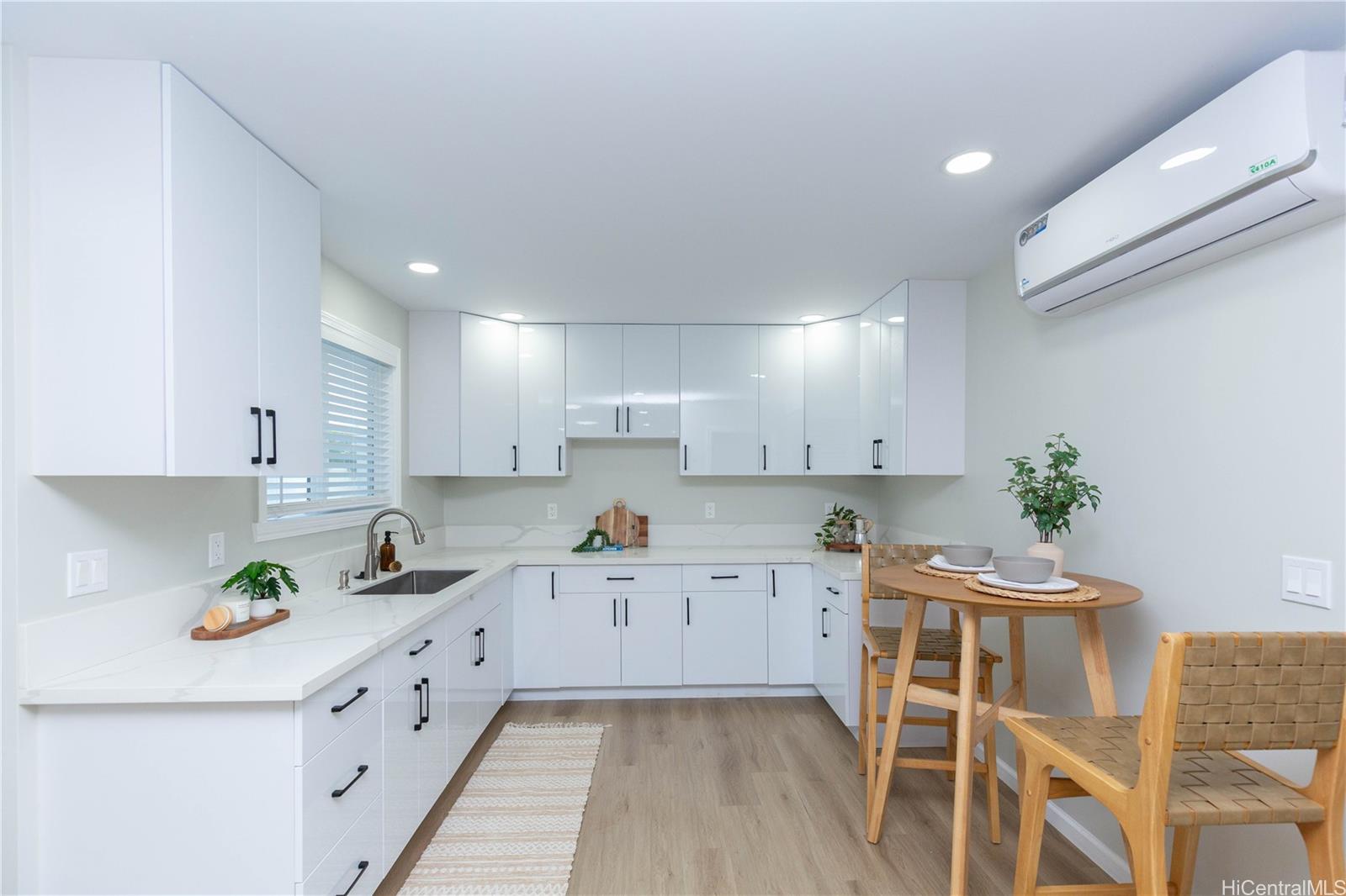 Built in 2024, this beautiful 6 bedroom, 3 bathroom attached single family home is located Ewa Beach. This home has 2 living rooms, and a full wet bar on the first floor (can be converted into a full kitchen). The kitchen features quartz counter tops, custom floor to ceiling cabinets, stainless steel appliances. 8 split A/Cs in both living rooms and all bedrooms. Luxury Vinyl plank flooring throughout the entire house, solar water heater, gutters, and a vinyl fence. Conveniently located to shops, gas station, school and the Ocean. Ocean access across the street.
