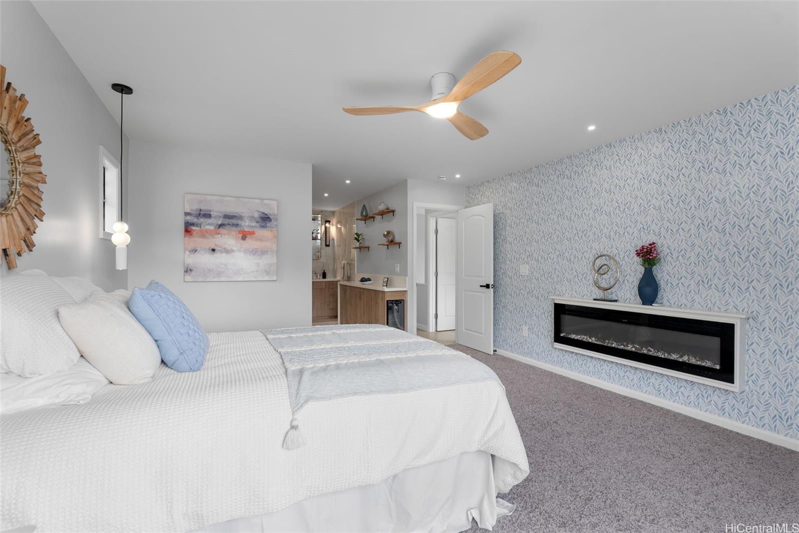 Located in the highly desirable neighborhood of Maunawili, this beautifully remodeled home sits under the breathtaking and serene mountains while the location provides a peaceful and relaxing environment. This home offers an enclosed garage and two levels of living space with wrap around decks on each floor (approx. 570 sf on the second level and almost 1000 sf on the top level), perfect for entertaining family and friends. You will love the attention to details throughout. The main floor boasts an open concept design with a large open kitchen with Cafe Brand appliances, a walk-in pantry, full bathroom and a bright, spacious living room perfect for entertainment and enjoying the views. The upper floor offers 4 bedrooms and 2 bathrooms. The primary bedroom is designed with a walk-in closet, spa like bathroom with a soaking tub and separate shower, a wall mounted electric fire place, and a wine refrigerator. Come home and appreciate the jacuzzi and BBQ grill that is included on the deck. Maunawili is just a short distance away from Pali Hwy, H-3, Downtown, shopping centers and to the beaches.