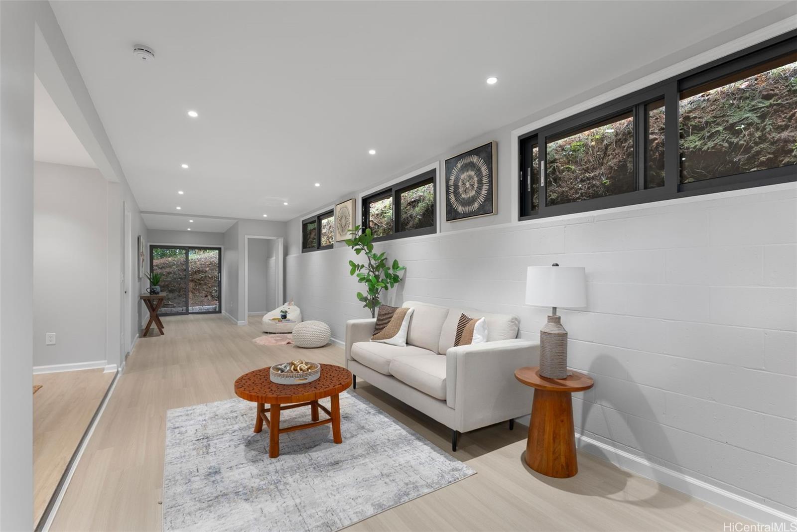 大変人気のあるマウナウィリ地区に位置するこの美しく改装された住宅は、息を呑むほど美しい静かな山々の麓にあり、静かでリラックスできる環境を提供しています。この住宅には、屋内ガレージと、各階にラップアラウンドデッキを備えた2階建ての居住スペース(2階は約570平方フィート、最上階は約1000平方フィート)があり、家族や友人をもてなすのに最適です。細部にわたる配慮をきっと気に入っていただけるでしょう。メインフロアは、カフェブランドの家電を備えた大きなオープンキッチン、ウォークインパントリー、フルバスルーム、そしてエンターテイメントや景色を楽しむのに最適な明るく広々としたリビングルームを備えたオープンコンセプトのデザインを誇ります。上階には4つのベッドルームと2つのバスルームがあります。主寝室にはウォークインクローゼット、深めのバスタブと独立したシャワーを備えたスパのようなバスルーム、壁掛け電気暖炉、ワインセラーが備わっています。家に帰ったら、デッキにあるジャグジーとバーベキューグリルをお楽しみください。マウナウィリは、パリ ハイウェイ、H-3、ダウンタウン、ショッピング センター、ビーチからすぐの距離にあります。
