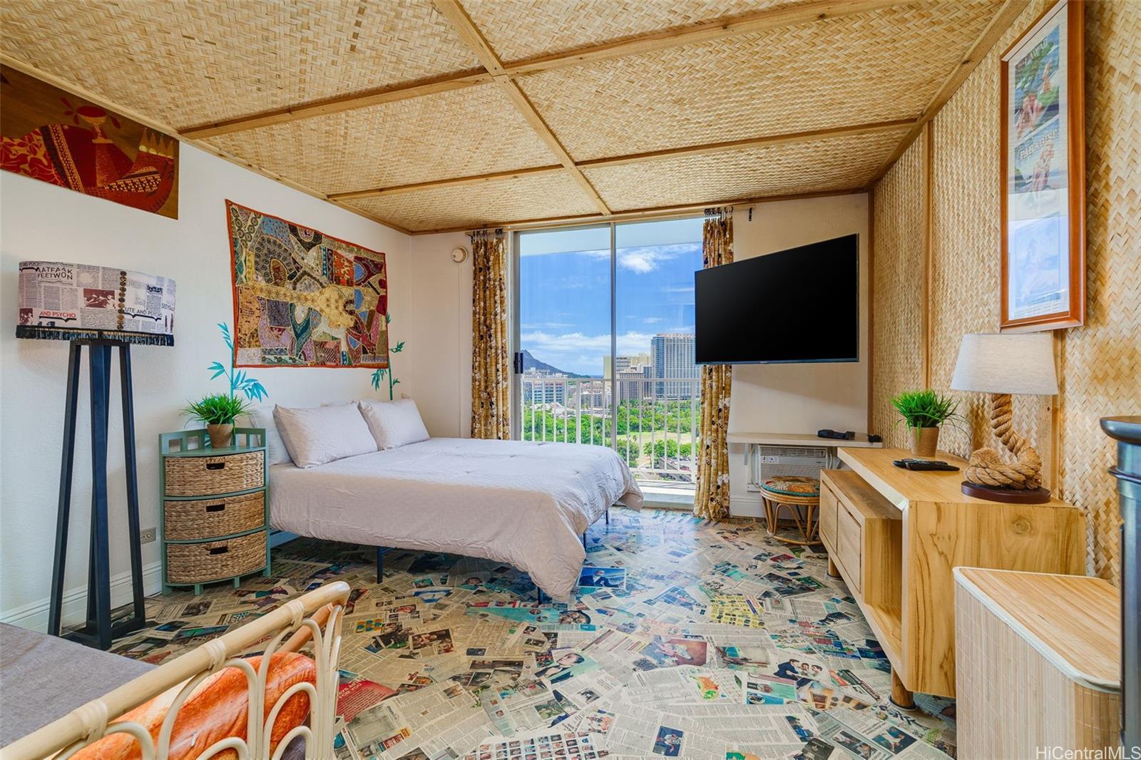 Classic Hawaiian unobstructed views in an unbeatable location near world-class beaches, dining, shopping, and entertainment, this little gem combines convenience and income potential in Waikiki's vibrant market. Inn on the Park is a legally permitted short-term rental building. Wonderful location to utilize as a personal retreat for weekend escapes and hosting out-of-town visitors; a fun and eclectic unit with a blend of Indonesian and Hawaiian flare and an oh, so unique flooring. Maintenance fees include cable TV, electricity, sewer, water, trash, 24-hr security.