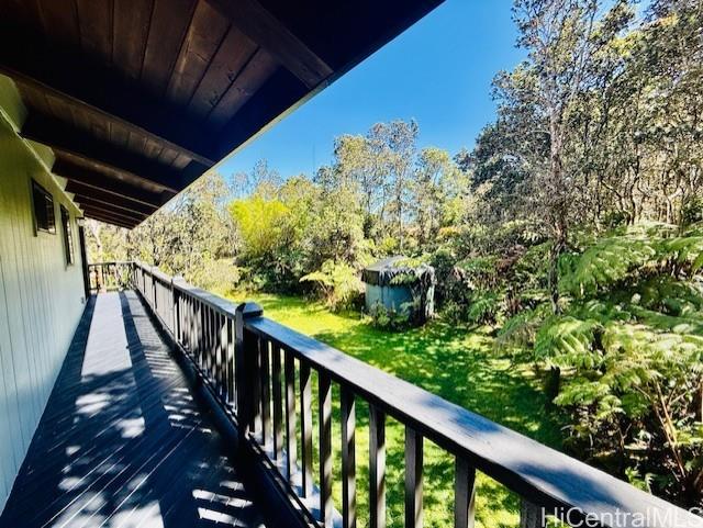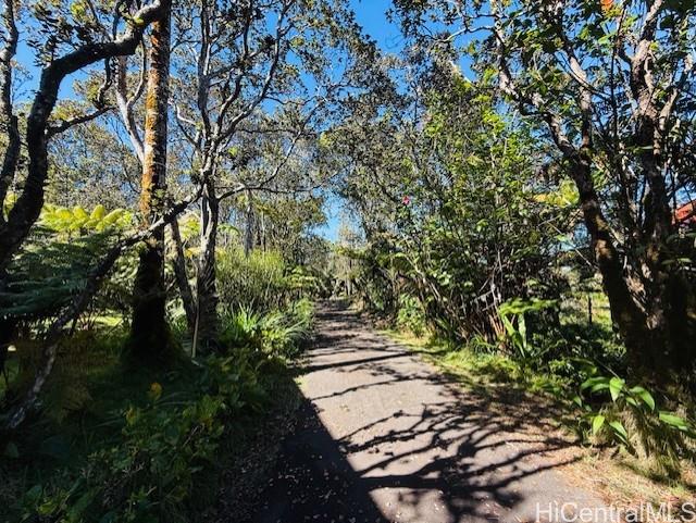 treetops. Covered lanais on both sides of the home invite you to relax and enjoy the surrounding forest views. Located just minutes from Hawai'i Volcanoes National Park, this charming two-story home, built in 1986, features soaring ceilings and a rich wood interior that creates a cozy, timeless cabin atmosphere. Set on a beautifully maintained half-acre, the lush property is filled with ohia trees and a serene hapu'u fern forest, offering a peaceful retreat immersed in nature. Recent updates include fresh exterior paint, new plumbing fixtures, a refrigerator, a Hawaiiana-style lounge sofa, solid wood bed frames, additional furnishings, a large ceiling fan, and a high-quality Enviro propane fireplace with remote control. The cabin is tucked away at the end of a quiet cul-de-sac in Mauna Loa Estates, just ten blocks from the highway, providing an ideal balance of privacy and convenience. Enjoy Volcano’s refreshingly cool temperatures year-round. A washer and dryer are located in the downstairs with a one-car garage with an electric door.