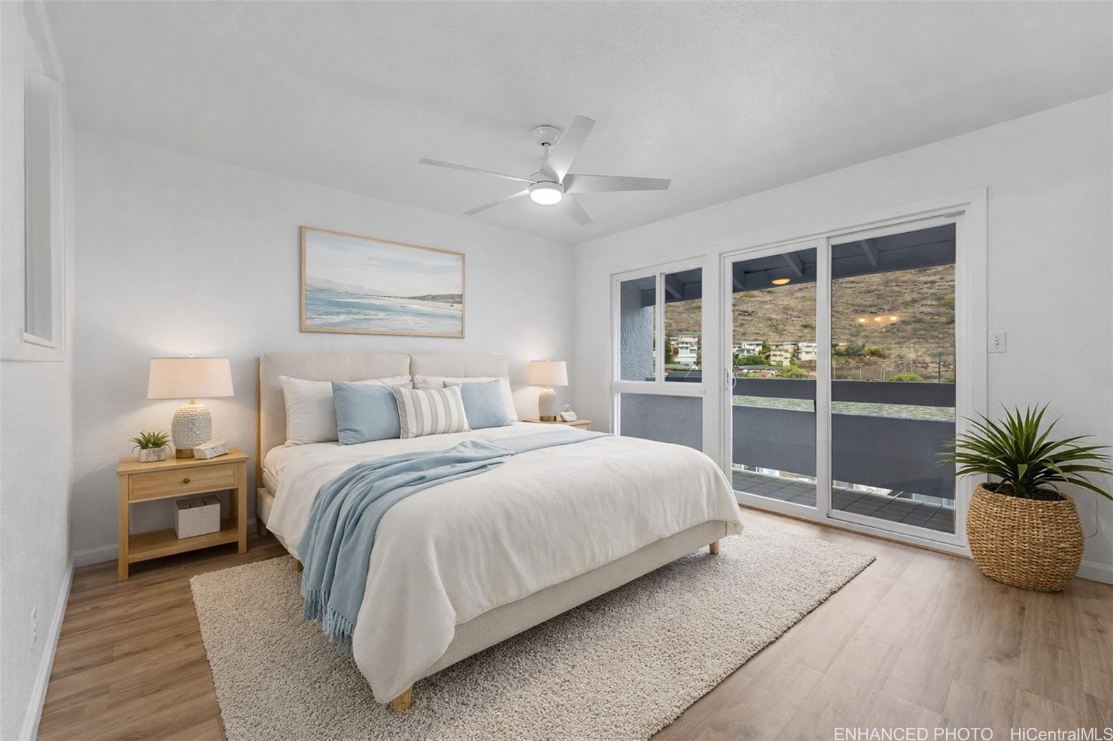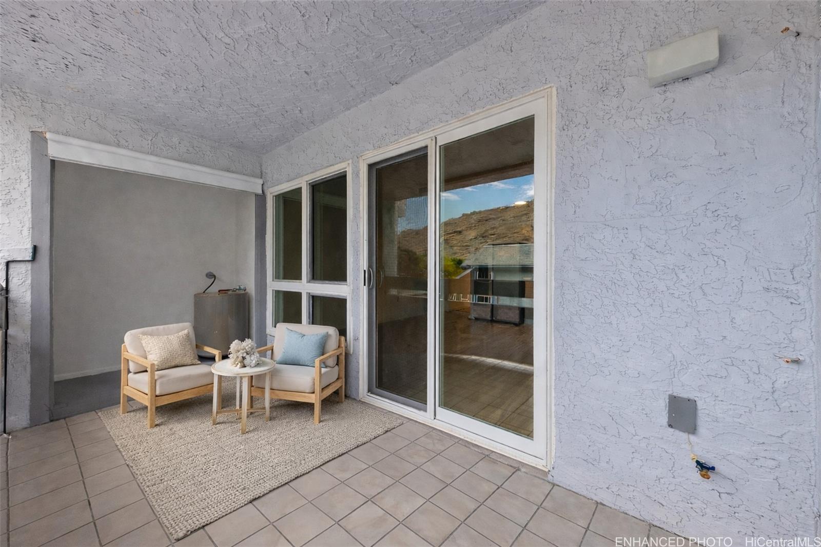 features quartz countertops and stainless steel appliances, perfect for family meals and gatherings. Enter from your ground-level 2-car covered carport and head upstairs to the spacious main floor with an open-concept kitchen, bright living area, and a convenient half bath. Enjoy morning coffee or family dinners on the covered lanai overlooking lush surroundings. Upstairs, the primary suite includes its own lanai and full bath, while the two guest bedrooms share another lanai with mountain views—ideal for creating cozy family spaces. This pet-friendly community (buyer to verify) is close to Costco, Safeway, Koko Marina shops, local eateries, and 24 Hour Fitness. A wonderful community to call home.