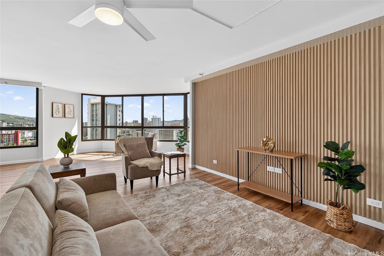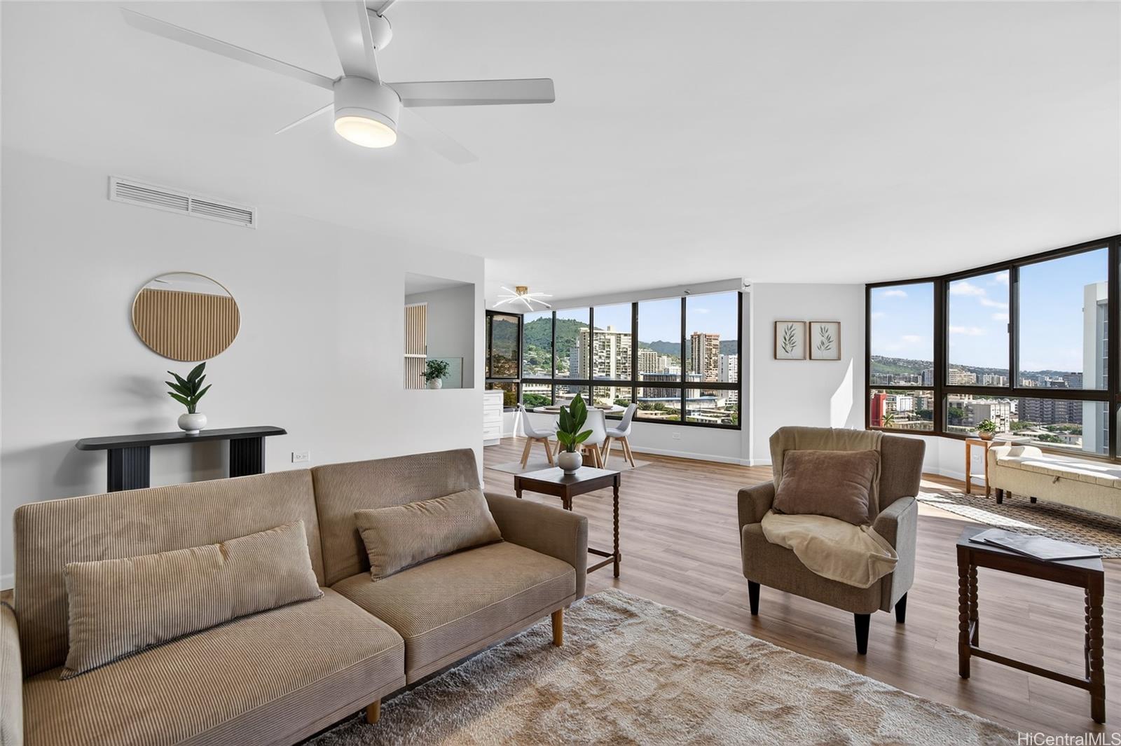 Beautiful, newly renovated, and remodeled high-floor residence with stunning 180-degree views and an exceptional floor plan. This bright and spacious unit features modern finishes throughout and is designed to maximize light, view, and comfort. Enjoy two (2) covered parking stalls plus extra storage, a rare and valuable combination. The building offers resort-style amenities including a swimming pool, jacuzzi, sauna, fully equipped fitness center, putting green, and more - perfect for both relaxation and active living. Centrally located with easy access to Downtown Honolulu, Kaka'ako, Waikiki, shopping, dining, beaches, and freeway access. A fantastic opportunity to own a move-in ready, high-floor unit in one of Honolulu's most convenient locations.