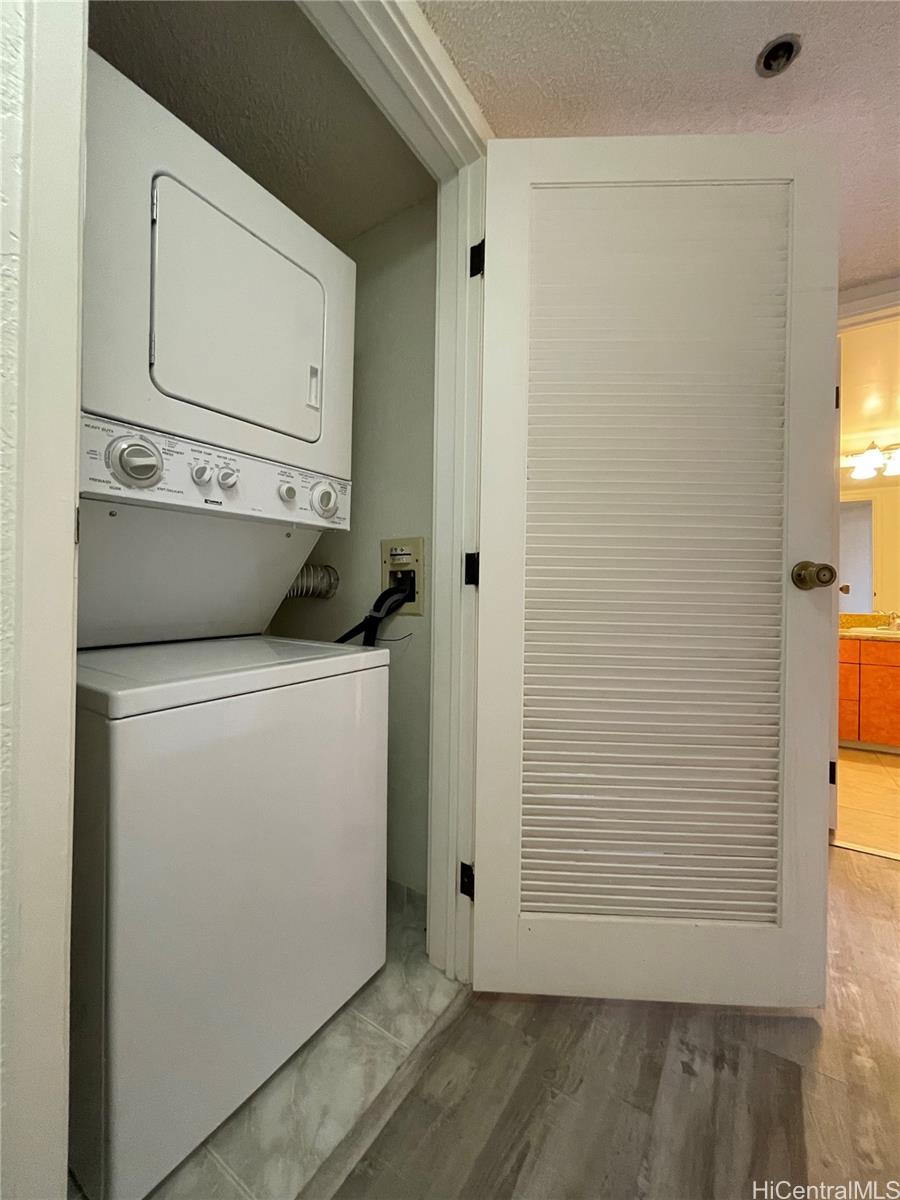 King Tower. The rarely available 2-bedroom, 2-bath residence includes an in-unit washer and dryer and is beautifully appointed and brand new. The refrigerator was replaced 2022. The unit offers laminate flooring throughout, an open kitchen concept with granite countertops, updated bathrooms and a spacious primary bedroom. Enjoy resort-style living with Liliuokalani Gardens outstanding amenities, including an on-site resident manager, swimming pool, koi ponds, tennis courts, BBQ areas, secured parking, guest parking, and fire sprinkler system. PARKING has a charge of 300 dollars per year. Come and experience the best of Waikiki living.