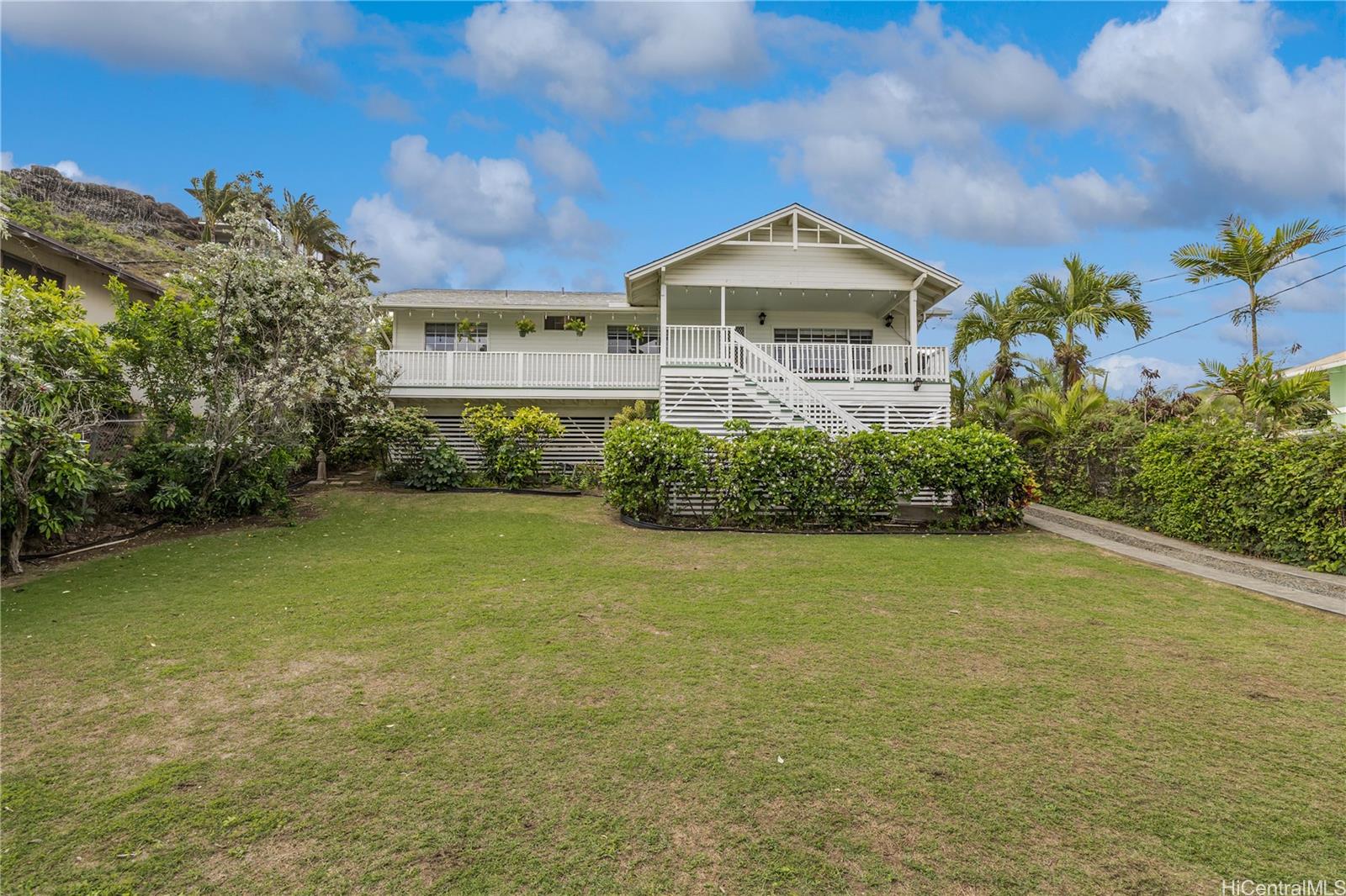 Rare opportunity to own a prime Lanikai property held by the same family for over 50 years. Situated on a generous 12,032 sq. ft. lot, this 4-bedroom, 2-bath home w/ 2 car enclosed garage offers abundant parking and potential to expand, renovate, or create a custom island retreat Located just one block from one of the widest sandy stretches of world-famous Lanikai Beach, the home features a spacious covered balcony ideal for enjoying sunrise views and cooling trade winds. Recent improvements include a rebuilt front staircase in 2025, a replaced roof in 2023, and a freshly painted interior (2025).This desirable location provides a convenient exit from Lanikai for commuters, is close to Mid-Pacific Golf & Country Club, and is in the coveted Ka?ohao Public Charter School district. Lanikai is known for its close-knit community and annual events such as canoe races, an 8K run, and the Lanikai Holiday Craft Fair. Enjoy exceptional island living with swimming, snorkeling, paddling, kayaking, or simply relaxing on the white sandy shores of one of the world’s most celebrated beaches. Experience the timeless beauty and unmatched lifestyle that Lanikai has to offer. Sold as is.