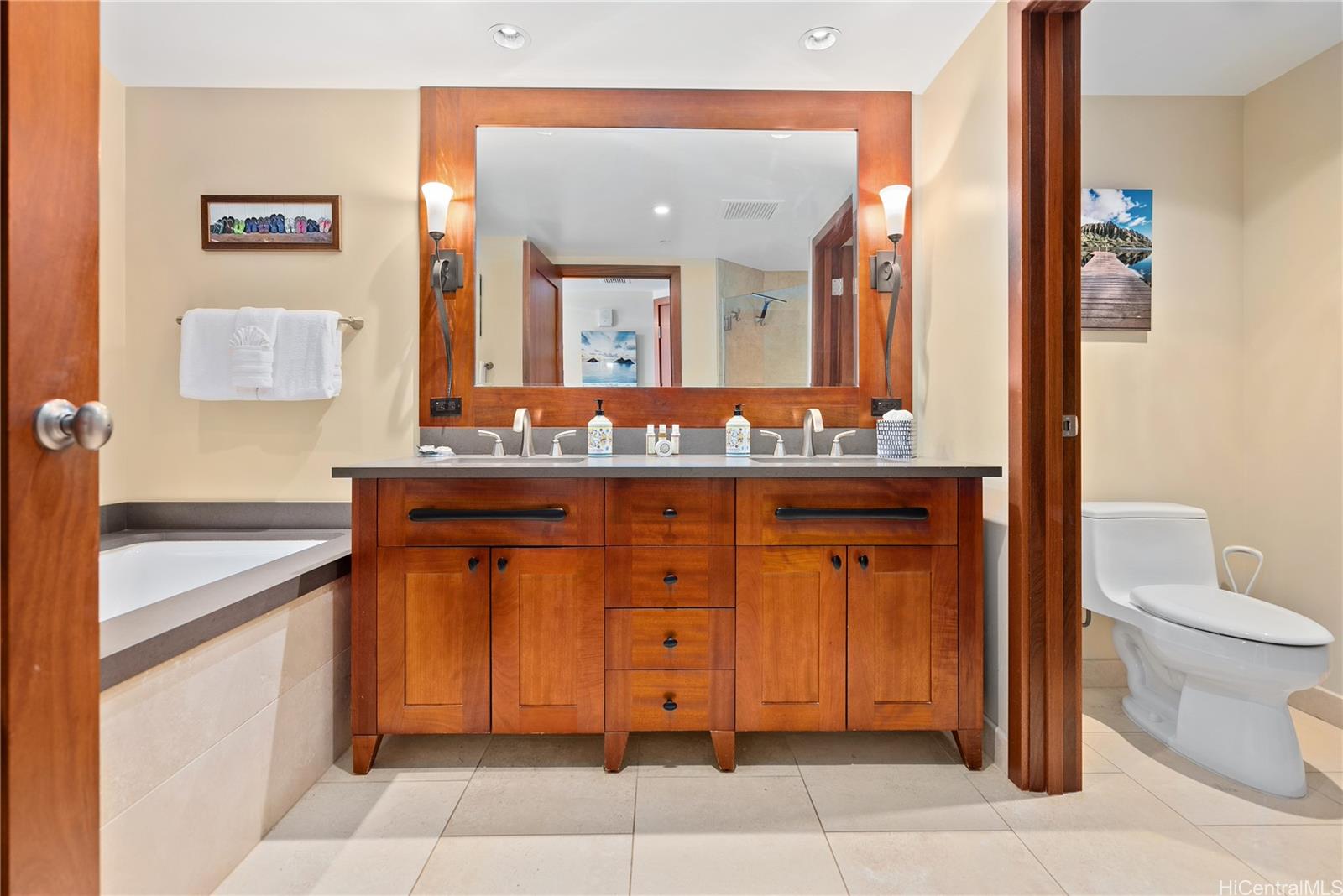 名高いコオリナのビーチヴィラにある、希少な3ベッドルーム、3バスルームのサンクチュアリで、極上のリゾートライフをご体験ください。オーシャンタワーの理想的なロケーションに位置するこのレジデンスは、島の優雅さと比類のない利便性を兼ね備え、2台分の駐車スペース(OT-004とBP1-111)と、非常に人気の高い特大の収納ロッカー(#L65)を備えています。マホガニーのポケットドアを抜けると、広々としたベランダに出ます。潮風が吹き抜け、緑豊かなトロピカルガーデンと太平洋の絶景が広がります。シェフ、ロイ・ヤマグチが手掛けたグルメキッチンは、Sub-ZeroとWolfの家電製品、磨き上げられた花崗岩、ワインセラーを備えています。トラバーチンのフローリングやマホガニーのクラウンモールディングなど、洗練されたタッチが、細部までこだわって手入れされたインテリア全体に施されています。 O-411は、コオリナの美しい砂浜ラグーンからすぐの、まさにターンキー方式の楽園のような物件を、合法的な短期賃貸物件としてご提供します。ラグーンプール、温水ラッププール、最先端のフィットネスセンター、サウナ、スチームルーム、そしてビーチフロントの専用バーなど、ワールドクラスのアメニティを存分にお楽しみください。ラグジュアリー、利便性、そして夕日の絶景が、このワールドクラスのリゾートであなたをお待ちしています。このヴィラの販売には、将来の短期賃貸のご予約も含まれます。
