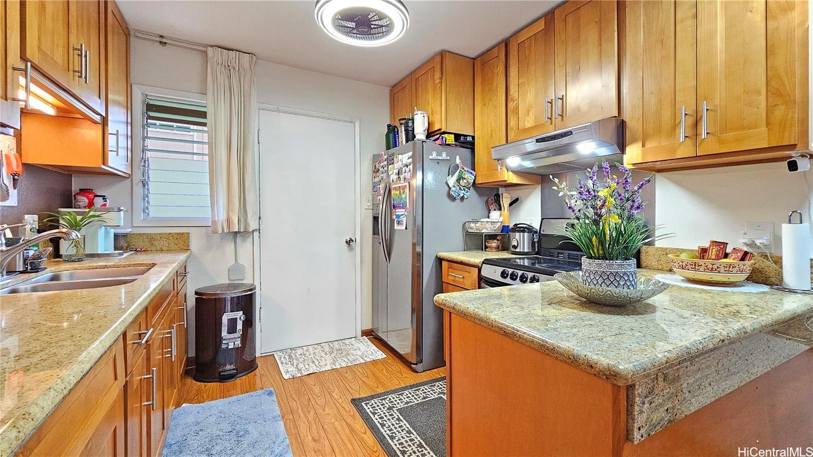 Excellent location on the quieter side of this complex. Highly desirable split level 2 bedroom, 1.5 bath in great condition. First level features the living room, kitchen and half bathroom with full size washer and dryer. Second level features 2 bedrooms with newly installed AC window units, full bathroom and nicely enclosed lanai. Ample street parking. This listing is contingent on finding a replacement and successful closing. To be conveyed in As Is condition.