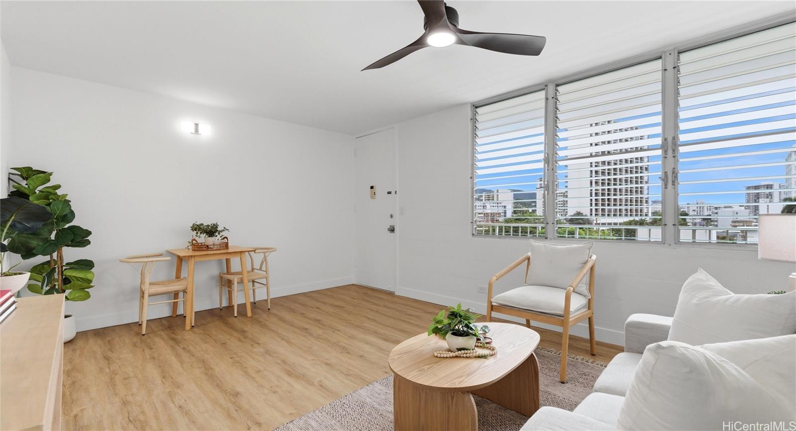 Featuring 561 SqFt of thoughtfully updated living space, this unit boasts brand new laminate flooring, chic finishes, and a spacious private lanai with an enjoying view. Situated in a secured, pet-friendly building in the heart of Makiki, you are just minutes away from Ala Moana Center, Ward Village, Waikiki, and freeway access. Includes one secured covered parking stall. Don't wait! See your future home today!