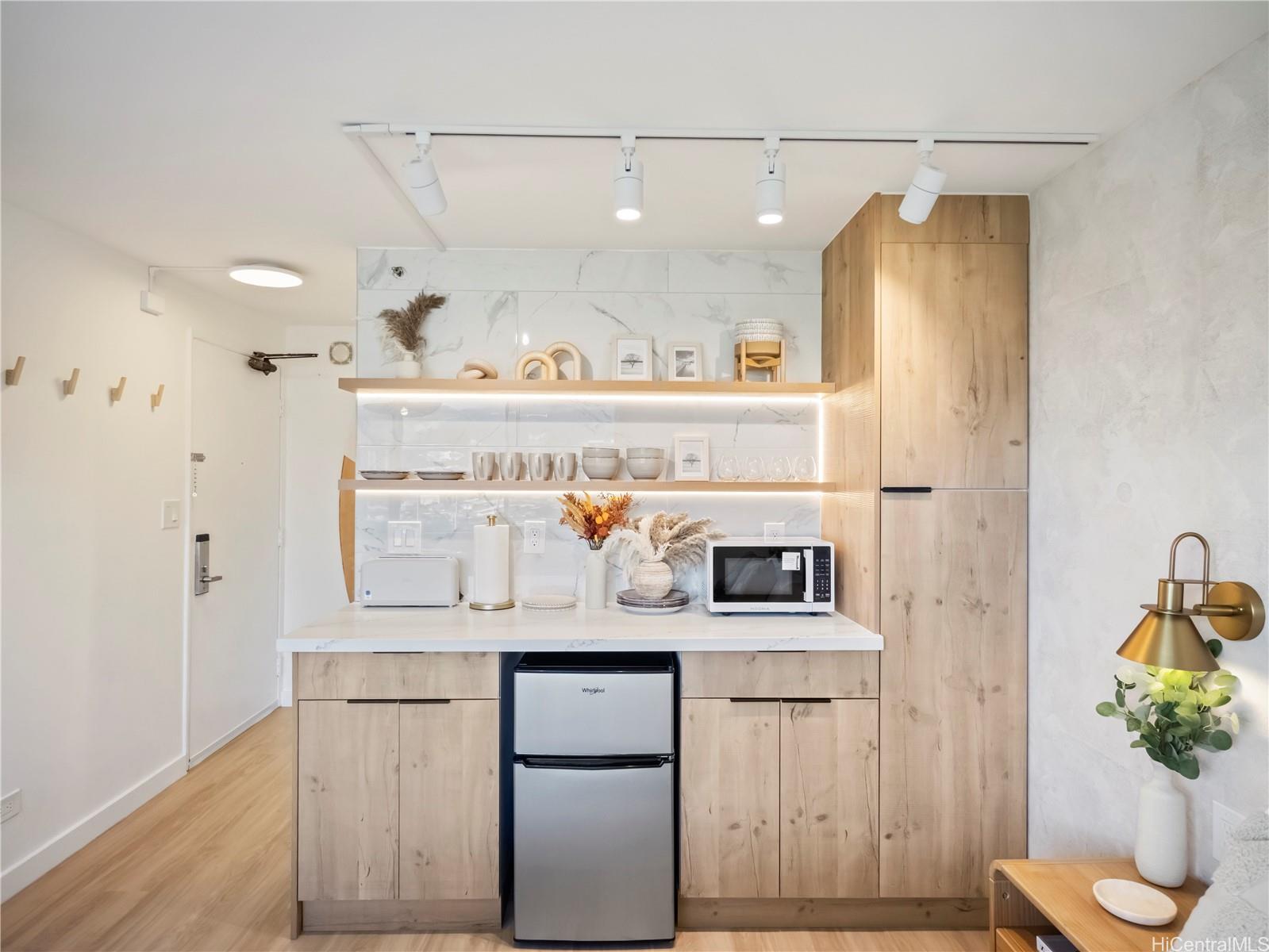 Turnkey short-term rental in Hawaiian Monarch — fully renovated with upscale modern finishes and a bright, airy feel. Enjoy peaceful canal and Ala Wai Golf Course views from the preferred quiet side of the building. Prime location near Waikiki Beach, Fort DeRussy, shopping, dining, and transit. Resort-style amenities include pool, BBQ area, hot tub, and fitness center. Ideal as a move-in-ready vacation rental or island retreat.