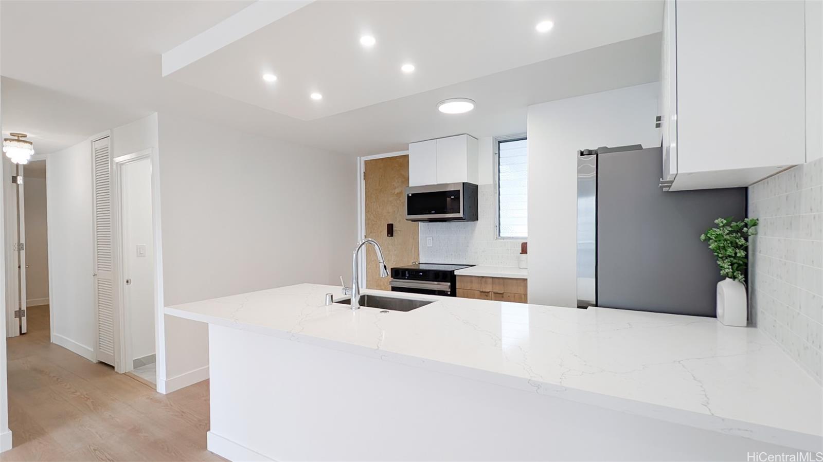 全面改装済みの2ベッドルーム、1.5バスルームのユニットは、洗練されたアイランドキッチン、リフォーム済みのバスルームとベッドルーム、新しいフローリング、塗りたての塗装、そしてスタイリッシュな吊り天井が特徴です。浄水機能と製氷機能を備えた冷蔵庫、オーブン付きレンジ、電子レンジフード、食器洗い機、給湯器、窓用エアコンなど、最新の家電が完備されています。室内洗濯機と乾燥機も備え、毎日の暮らしに便利です。外に出ると、85平方フィート(約8.3平方メートル)の屋根付きベランダがあり、プライバシーを守るハリケーンシャッターも設置されています。セキュリティの高い建物は、住居と駐車場の両方にゲートでアクセスでき、常駐のレジデントマネージャーと新しくタイル張りのプールも備えています。退役軍人ローン承認済み、100%保険加入済みのこの住宅は、すぐに入居できる最初のマイホームとして最適です。