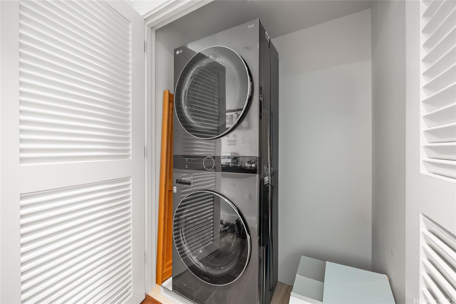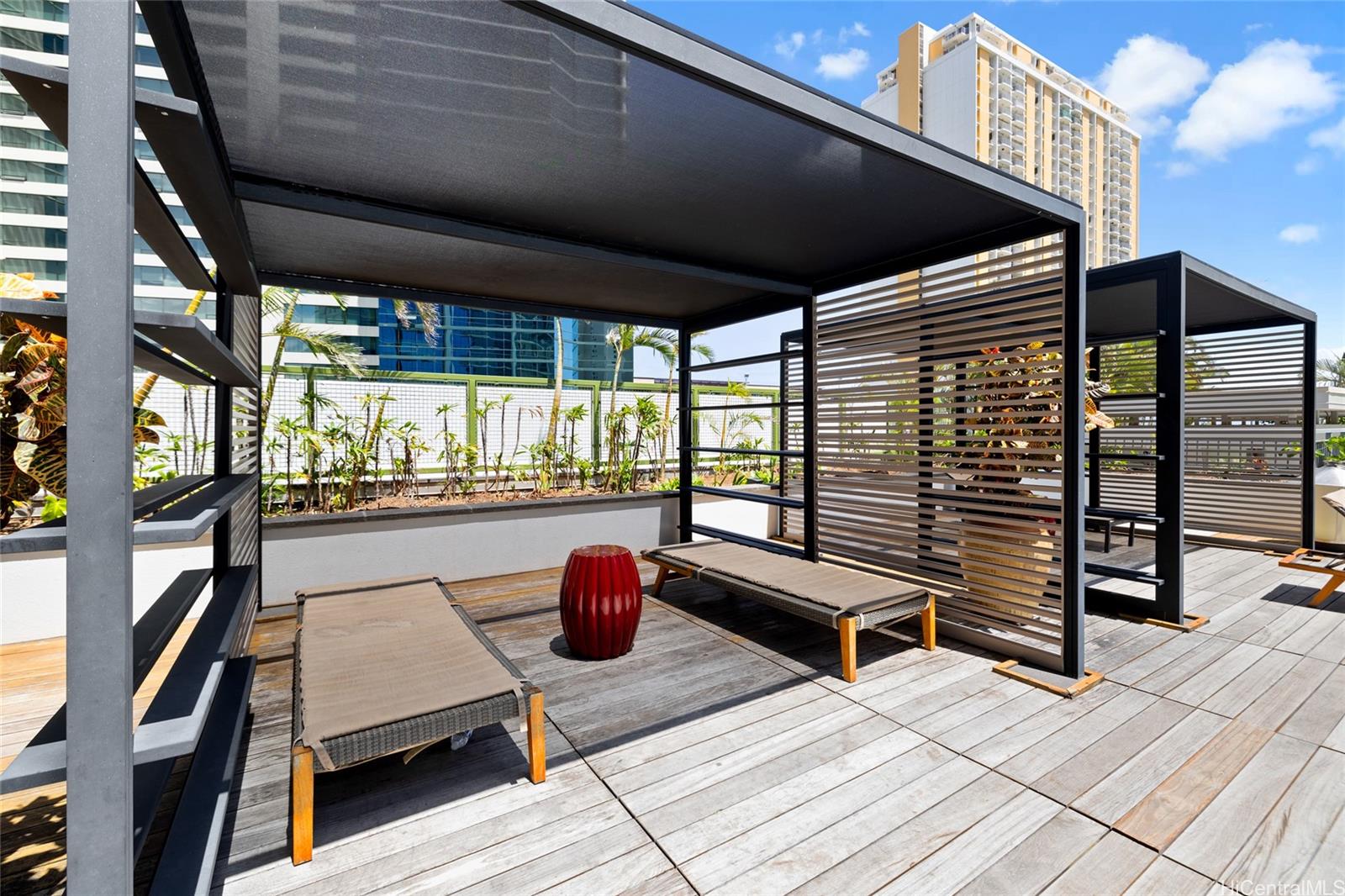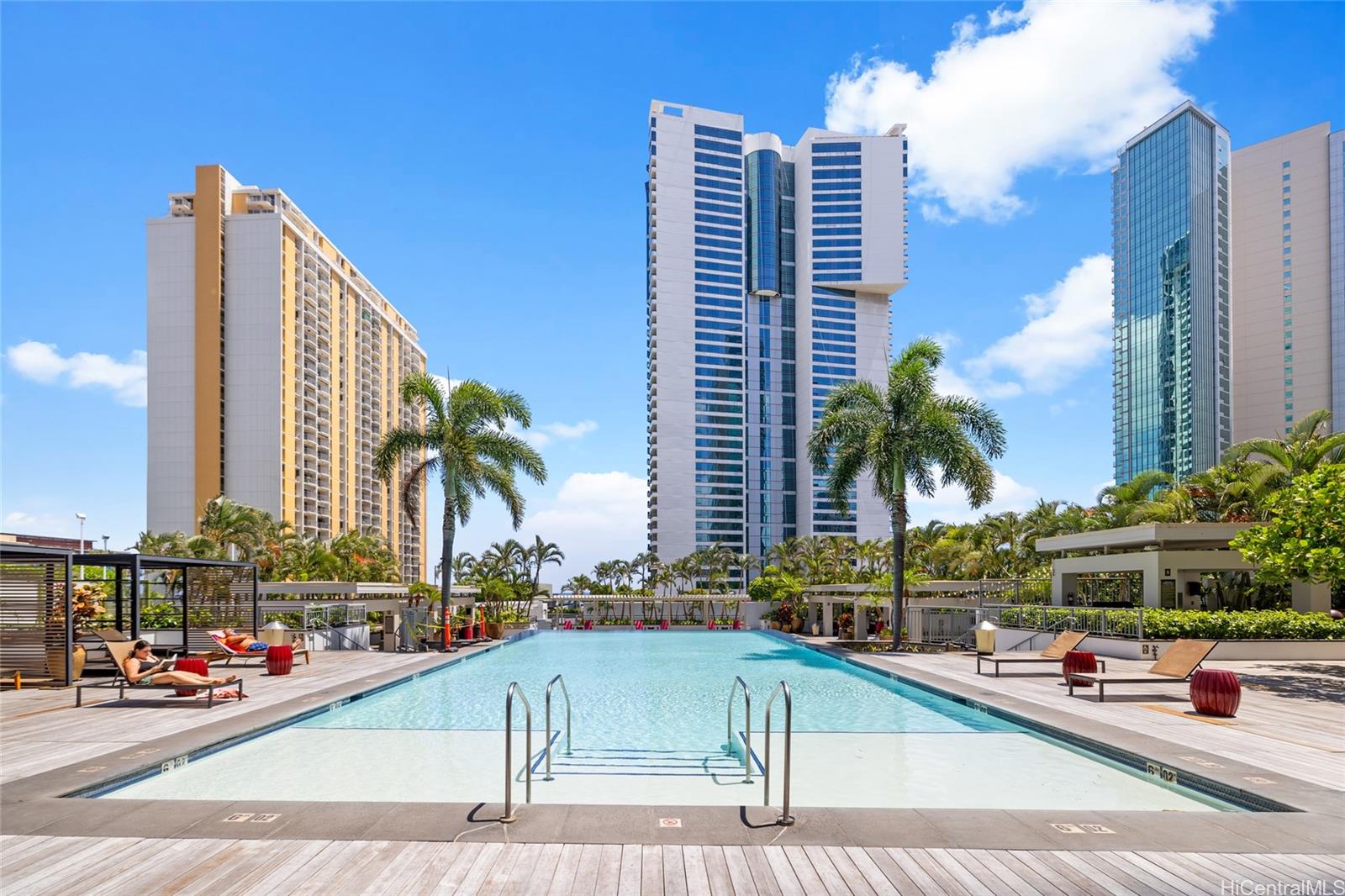 Experience the pinnacle of urban living in this rarely available high-floor residence at Waihonua. Perched on the 40th floor, this sleek 1-bedroom, 1-bathroom home offers breathtaking, unobstructed vistas of the Honolulu skyline and the majestic Ko‘olau Mountains. The interior reflects modern elegance with floor-to-ceiling windows, rich hardwood flooring, and a gourmet kitchen featuring polished granite countertops and premium Bosch stainless steel appliances. Unlike many urban units, this residence offers the ultimate convenience: one dedicated parking stall and a private storage locker. Resort-Style Amenities Living at Waihonua means access to a private club-style environment. The 6th-floor recreation deck is your personal playground, featuring.