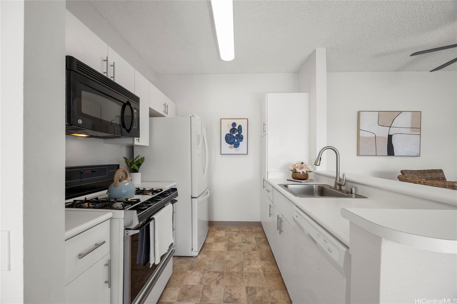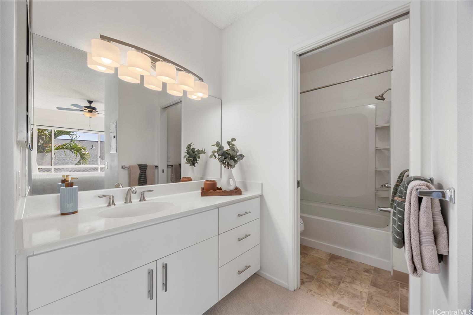 Located in the desirable Sun Rise community, this updated 2-bedroom, 2-bath residence includes two parking stalls and is situated on the top floor of a low-density building with only two units per level, offering privacy and a peaceful living environment. The kitchen opens to a spacious living area, while natural light fills the home from the lanai, showcasing serene treetop views. The unit has been thoughtfully refreshed throughout, including kitchen cabinet repairs and repainting, updated lighting and ceiling fans, and bathroom improvements. Conveniently located in Ewa with easy access to shopping, dining, entertainment, and golf courses—this move-in-ready home is a great opportunity. *Pet friendly (buyer to verify).