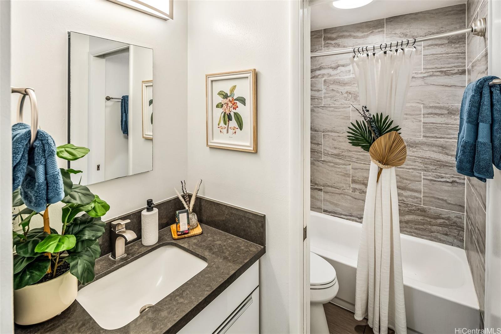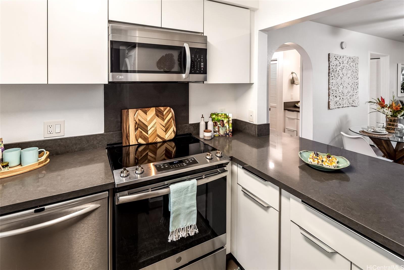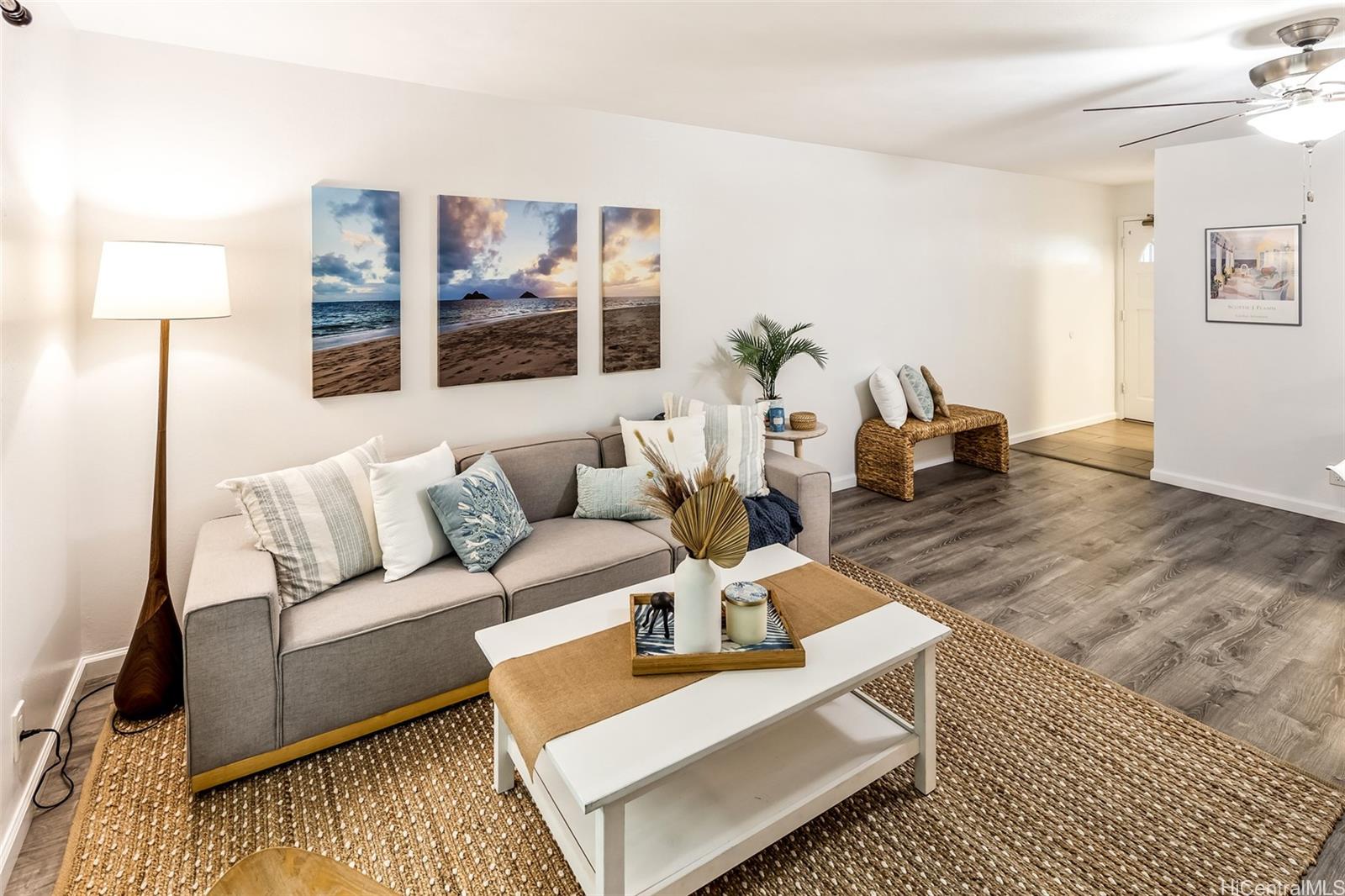 This well situated ground floor unit was totally remodeled in 2019 - kitchen, baths and new luxury vinyl plank flooring throughout. Freshly painted inside in January 2026. Two bedroom two bath unit with one covered parking stall #136 just steps to the unit. Guest parking is also available. The Hokulani is a close proximity to Target, Safeway, Whole Foods, Kailua Beach and many more shops and restaurants. It also includes a Playground for children and a barbeque area for your enjoyment. Very reasonable maintenance fees makes this a win win for Kailua living. Association recently installed new windows and sliding doors into all of the units at no additional costs to the owners. Easy to see - call and go Sentrilock showing. Offers will be presented as received.