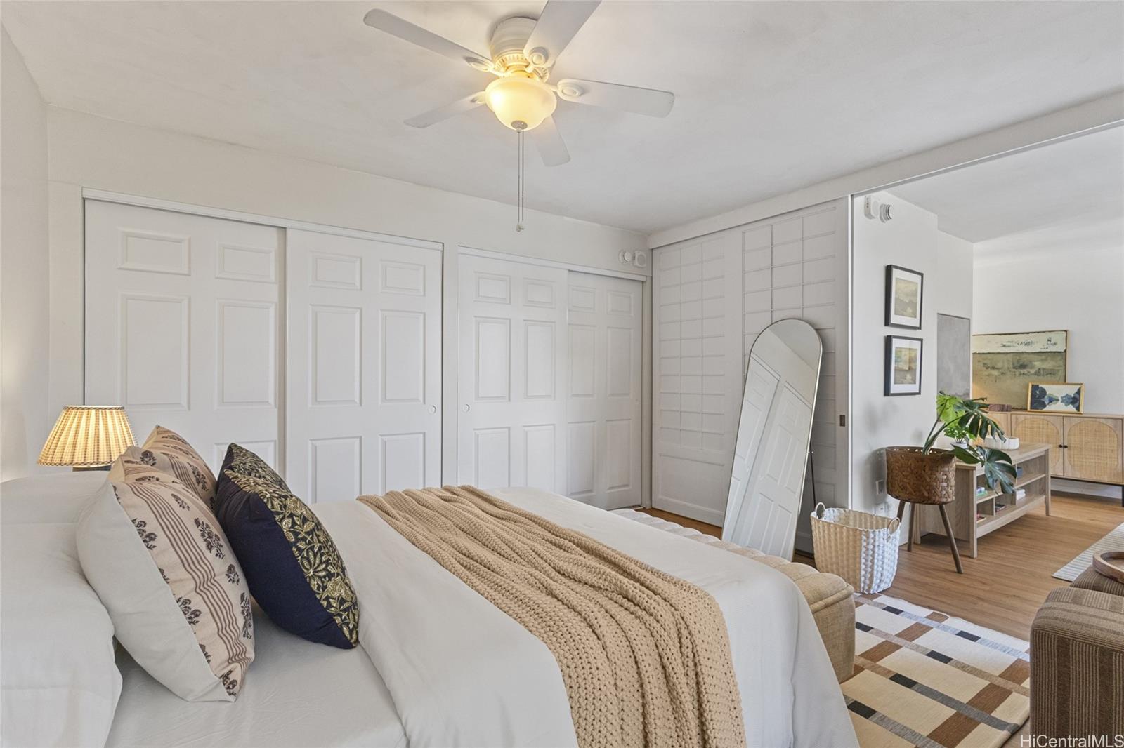 thoughtfully laid-out 1-bed, 1-bath condo overlooks the Ala Wai Canal/Golf Course and is just a short stroll to the