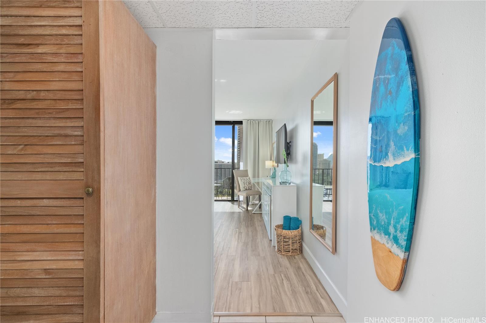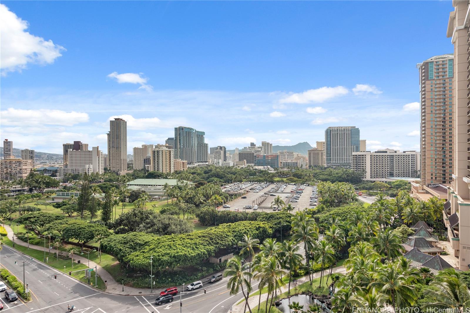 Rare opportunity to own a newly renovated, turn-key legal short-term rental with deeded parking in one of Waikiki’s most desirable resort locations, offering the perfect blend of investment performance and personal vacation use. High-floor Unit 1022 features a spacious studio layout with a private lanai showcasing sweeping 180-degree views of Diamond Head, the ocean, and the Waikiki skyline—an experience that consistently attracts guests and enhances rental demand. The bright interior highlights modern finishes, updated flooring, stylish furnishings, and an efficient open design that maximizes comfort and guest satisfaction. Located just 1 block from the beach, with shopping, dining, and entertainment nearby, this prime location supports strong year-round occupancy. The unit also features a custom hand-painted mural by local artists, adding memorable island character that helps the unit stand out in the rental market. Owners/guests enjoy boutique-style amenities including refreshed common areas, pool, BBQ, fitness center, on-site laundry, front desk services,& 24-hour security, making this an exceptional opportunity for investors seeking income potential with lifestyle flexibility.