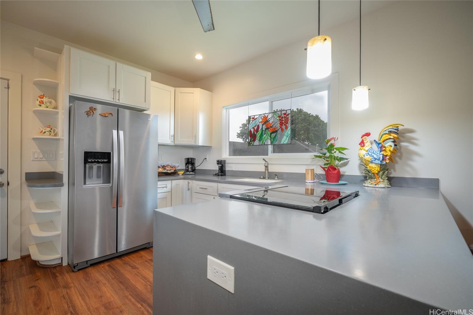 3 BR, 2 Bath Charming Home with 2 Car Carport on former Lychee orchard land. Rebuilt in 2017. Modern, open kitchen with Corian counter tops. Inviting front Lanai and high ceilings in home. New stove. Washer & Dryer included. Fenced yard & ample storage space. Close to Wahiawa town and Ka'ala Neighborhood Park.