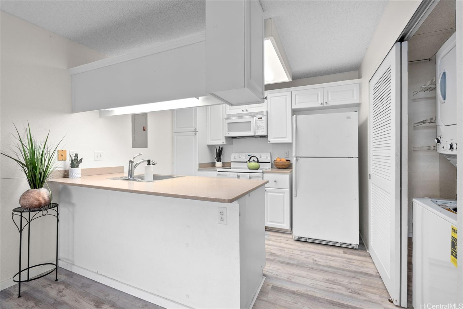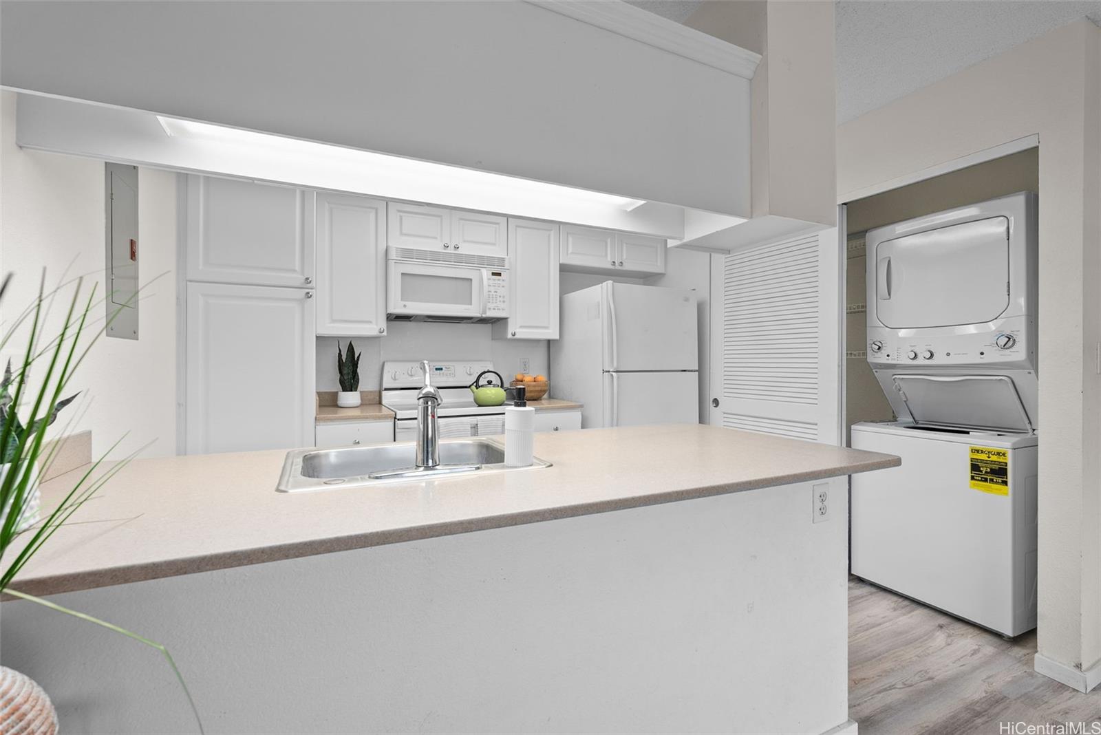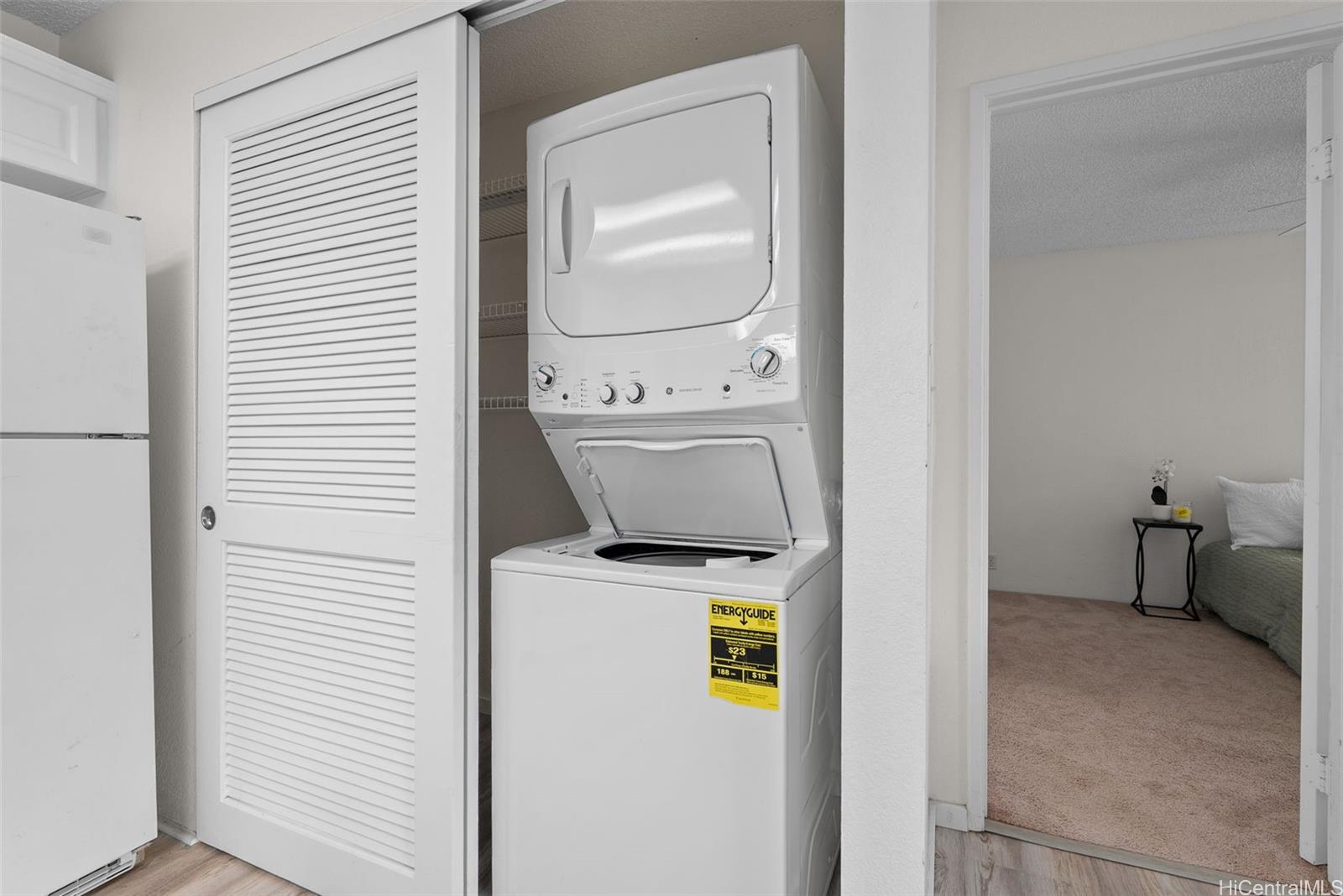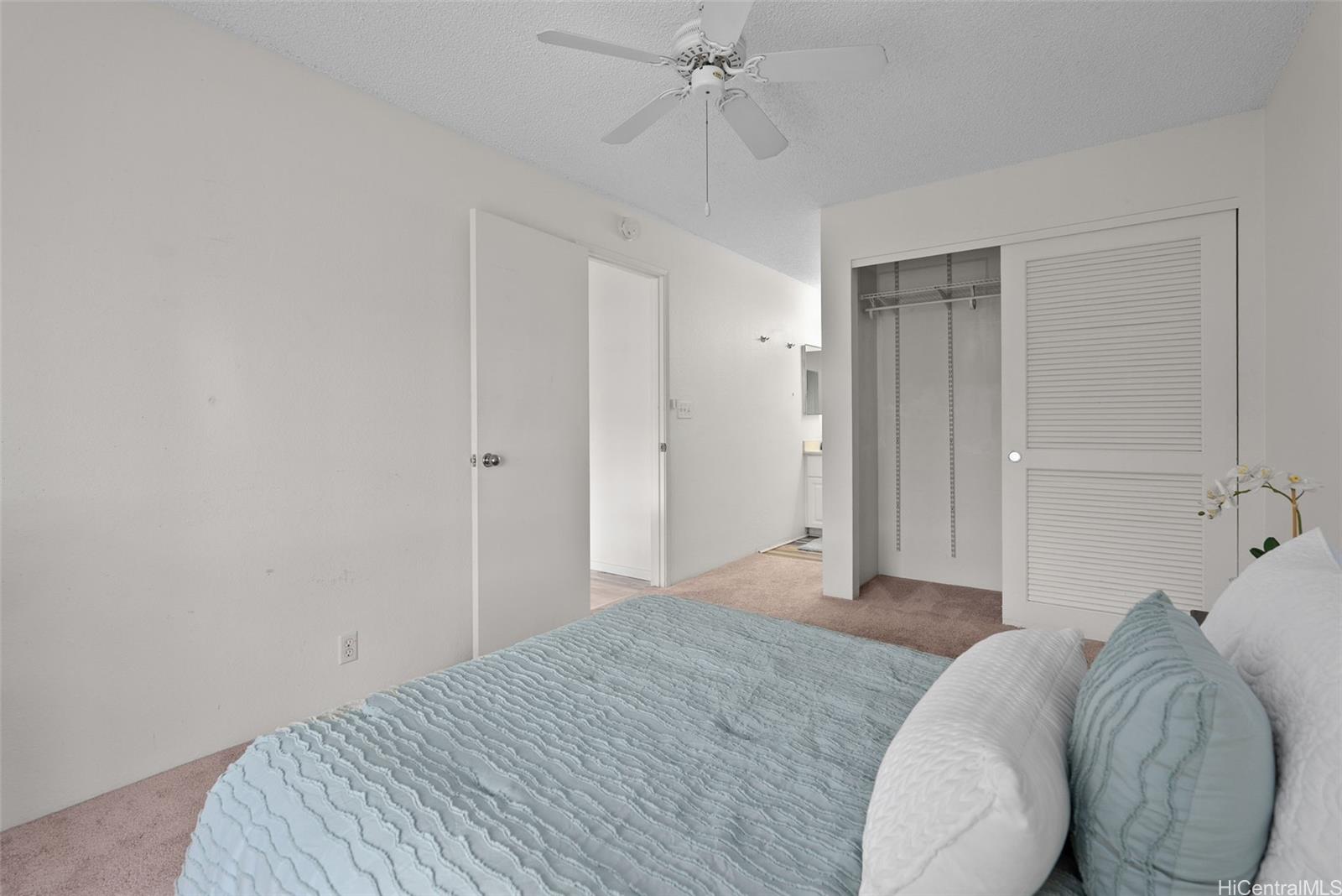 NEW LISTING! Well maintained 1-bedroom, 1-bath second floor townhouse at Royal Palm at Waipio! This interior unit is ideally located away from the main road for added peace and privacy. Move-in ready residence features newer luxury vinyl plank flooring in the living room, a spacious private lanai with storage closet, and a newer stack washer/dryer. Recent updates include a newer refrigerator, ceiling fan, offering comfort and everyday functionality. New water heater installed in 2023. Prime assigned, covered parking stall located just steps from the front door. Pet-friendly community with easy freeway access to Schofield Barracks, and near Central Oahu Regional Park, Costco, shopping centers, restaurants and daily conveniences. Reasonable HOA fees. An affordable and excellent opportunity to own in a desirable Waipio neighborhood. Priced to sell well below tax assessed value, and one of the best values at Royal Palm. Fantastic opportunity for an investor, VA Buyer, or first-time Buyer!