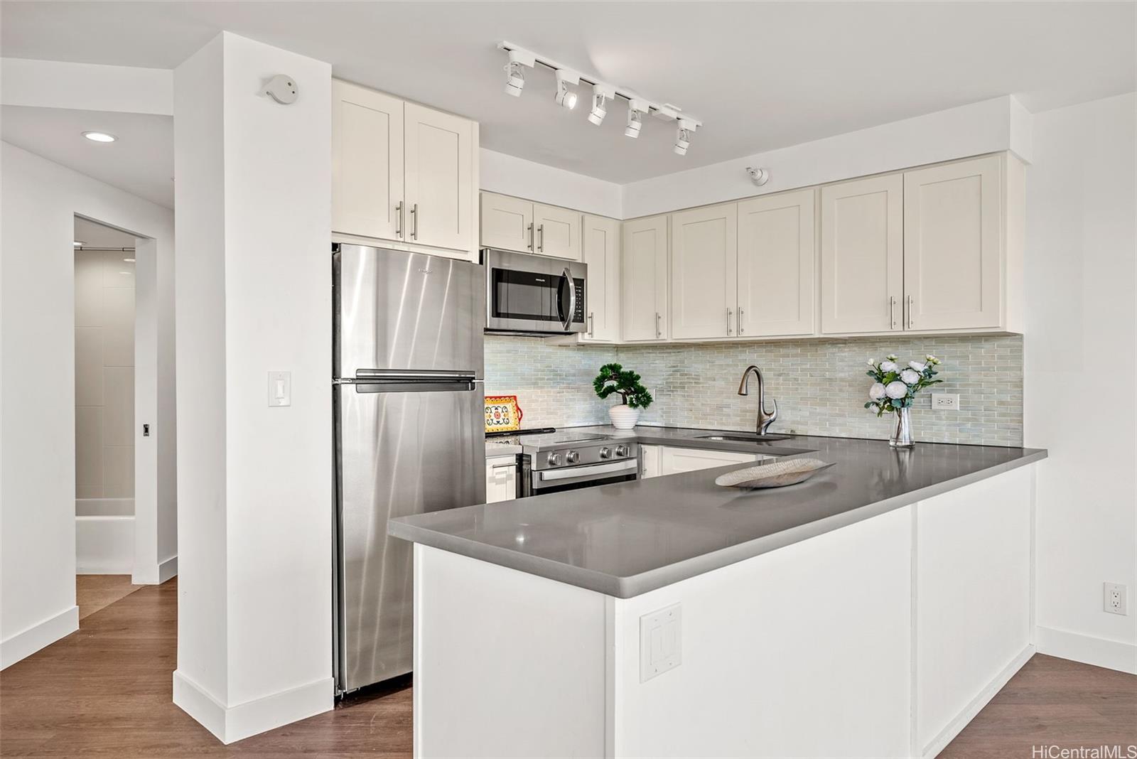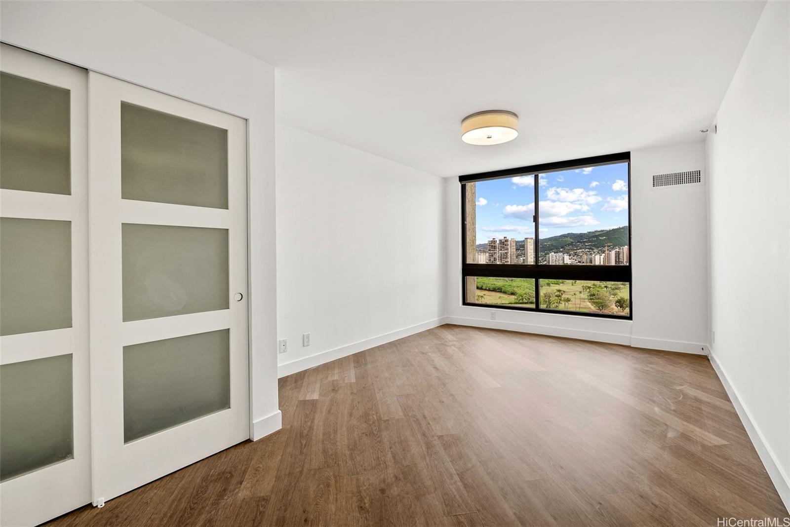 THIS IS IT....! Rarely available two bedroom, two bath condo in the coveted "12" stack of the King Tower at Liliuokalani Gardens. The large 944 sf unit features gorgeous, wide- open views over the golf course and out to the Ko'olau Mountains. You'll love coming home to this remodeled unit with new appliances, paint, luxury vinyl plank floors, central A/C, custom shades, fire sprinklers and a large storage closet. The preferred floor plan offers privacy with bedrooms on opposite sides of the condo, in-unit washer/dryer and unobstructed views from the living areas and both bedrooms. Liliuokalani Gardens is famous for its expansive and spectacular gardens that cover 70% of the property. The resort-style amenities include the pool & spa surrounded by beautiful tropical gardens, koi pond and stream, BBQ areas, a pool pavilion with a full kitchen and two lighted tennis courts. Enjoy the best of Waikiki living with the close proximity to the beach, restaurants, shopping and entertainment. 24/7 security, secured parking, guest parking and secured bike and surfboard storage make this condo an excellent value! One or more photos have been enhanced.