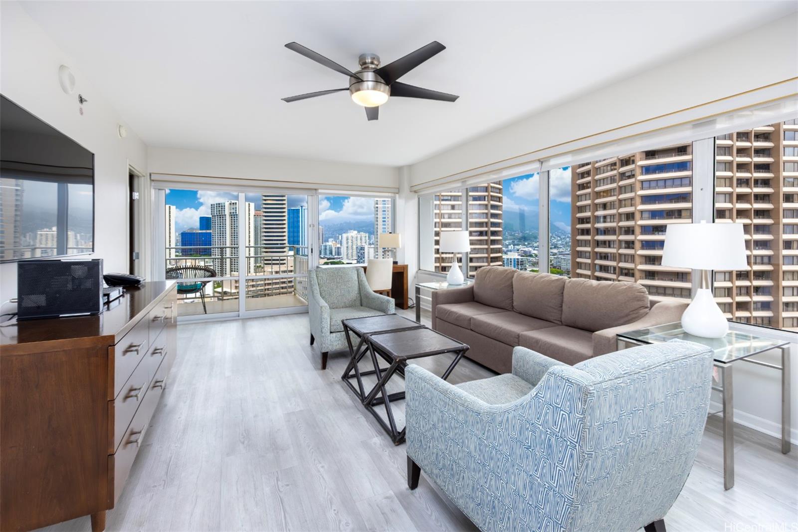 ワイキキの玄関口で、アイコニックなアイランドライフをお楽しみください。イリカイ ホテル & ラグジュアリー スイーツ #2209 へようこそ。この希少な 2 ベッドルーム、2 バスルーム、マウカコーナーレジデンスは、楽園の眺望を最大限に楽しめるよう設計された洗練された間取りが特徴です。広々とした 1,000 平方フィートの室内は、合計 240 平方フィートの 2 つの広々としたベランダにシームレスにつながっており、コオラウ山脈やホノルルの街並みから太平洋やアラワイ港まで、ダイナミックな眺望を楽しめます。プライバシーを高めるため、ベッドルームはスイートの反対側に配置されています。2014 年に上品に改装されたレジデンスは、ラミネートフローリング、床から天井までの窓、ステンレス製の電化製品、木製キャビネット、花崗岩のカウンタートップ、ビルトインのバーカウンターを備えたアップグレードされたキッチンを備えています。この特別なロケーションは、ヒルトン ラグーン、砂浜の海岸線、レストラン、ショッピング、エンターテイメントからすぐのところにあります。レンタル実績についてはお問い合わせください。