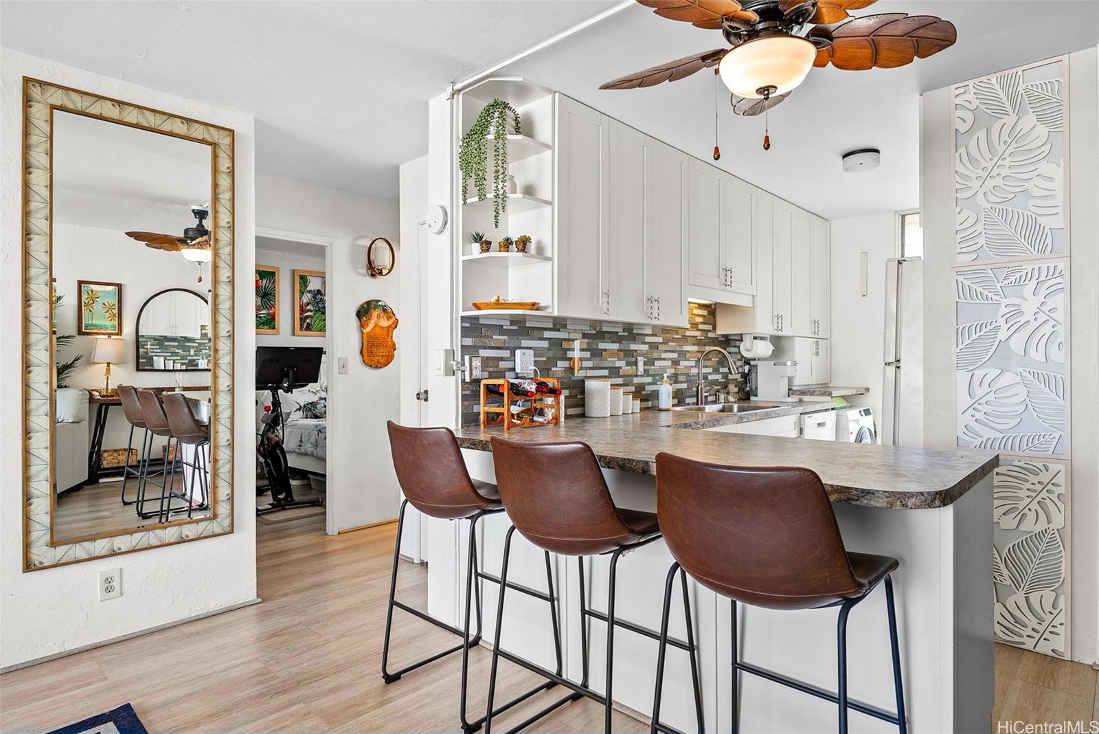 モデルハウスのように最近改装された家具付きコンドミニアム。美しく背の高い白いキッチンキャビネット、洗濯機(新品)/乾燥機、食器洗い機などの素敵な家電製品が揃っています。落ち着いた色調のインテリアと新しい高級ビニール板のフローリング。15階からの山々、ホノルル、太平洋の素晴らしい景色をお楽しみください。屋根付きのベランダはコンドミニアムと同じ幅で、リラクゼーションエリアと屋外ダイニングがあります。大変お得です。借地権付き物件で、リースは2049年に満了します。すべてが含まれています!厳選された地元のアート作品、素敵な革張りのリビングルーム用家具、ビーチの必需品(椅子、パラソル、シュノーケル用具)。建物に入るには、鍵で入り、次にエレベーターエリアへの鍵で入ります(どちらもゲスト用コールボックス付き)。玄関ドアにはプログラム可能なキーレスエントリー。壁掛けテレビ。浴室と主寝室の化粧台にあるLEDバニティミラーをご覧ください。建物ではユニットの賃貸が可能ですが、最短リース期間は12ヶ月です。投資に最適な物件です。ビーチに近く、H1、基地、病院へのアクセスも良好です。また、ハワイの不動産をメインの住居またはセカンドハウスとしてお手頃価格で購入できるのも魅力です。一般公開:2月22日(日)13:00~16:00