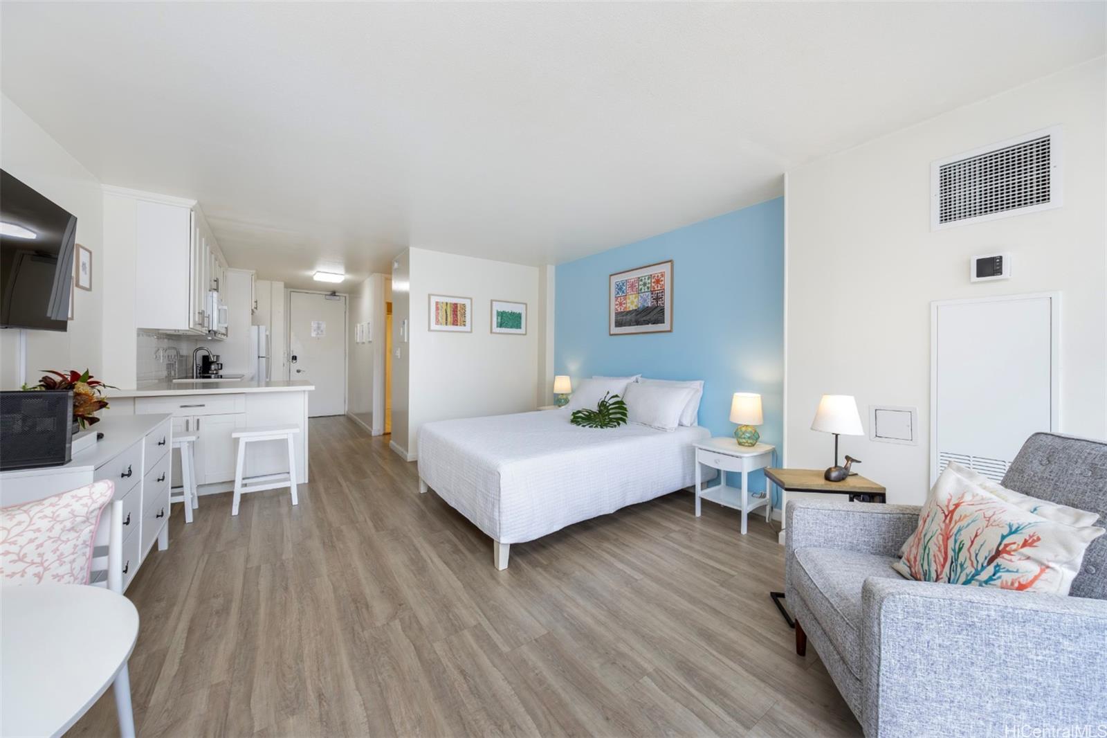 Situated at the entrance of Waikiki, Ilikai Marina features an exceptional location along Ala Wai Harbor, minutes from Ala Moana Center, Ala Moana Beach Park, and everything Waikiki offers. Step inside this bright studio + 1-bath floor plan and discover a well-kept interior that shows beautifully. Featuring updated flooring, lighting, kitchen and bathroom cabinetry and counter-tops, this move-in ready residence is a must-see. From the interior and lanai spaces, enjoy partial views of the Koolau mountains. Located a short distance from the Hilton Hawaiian Lagoon and all-things Waikiki, this condominium residence offers a sought-after island lifestyle in the heart of Honolulu, with access to sandy beaches, nearby shops, restaurants, and entertainment.