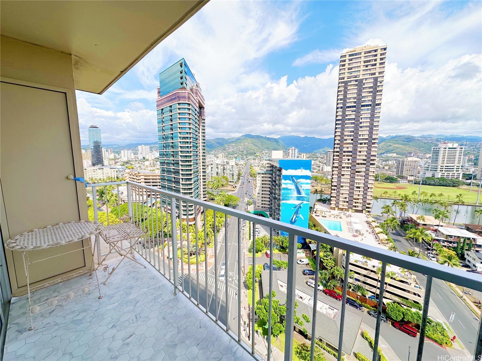 Welcome to elevated island living at the Pavilion at Waikiki! This well-kept 1-bedroom, 1-bath residence with one assigned parking stall offers comfort, convenience, and a touch of tranquility in the highly sought after neighborhood of Waikiki. Enjoy your own private lanai—perfect for taking in refreshing tradewinds and city-to-mountain views. The thoughtfully designed layout maximizes space and functionality, making it ideal for everyday living or a Waikiki getaway. Located just moments from renowned beaches, shopping, dining, parks, the International Market Place, and the Ala Wai Canal, this home places you right where you want to be. Experience the best of urban island living in a move-in ready condo that truly stands out. Don't wait, schedule your viewing today and see what Pavilion at Waikiki living can offer you!