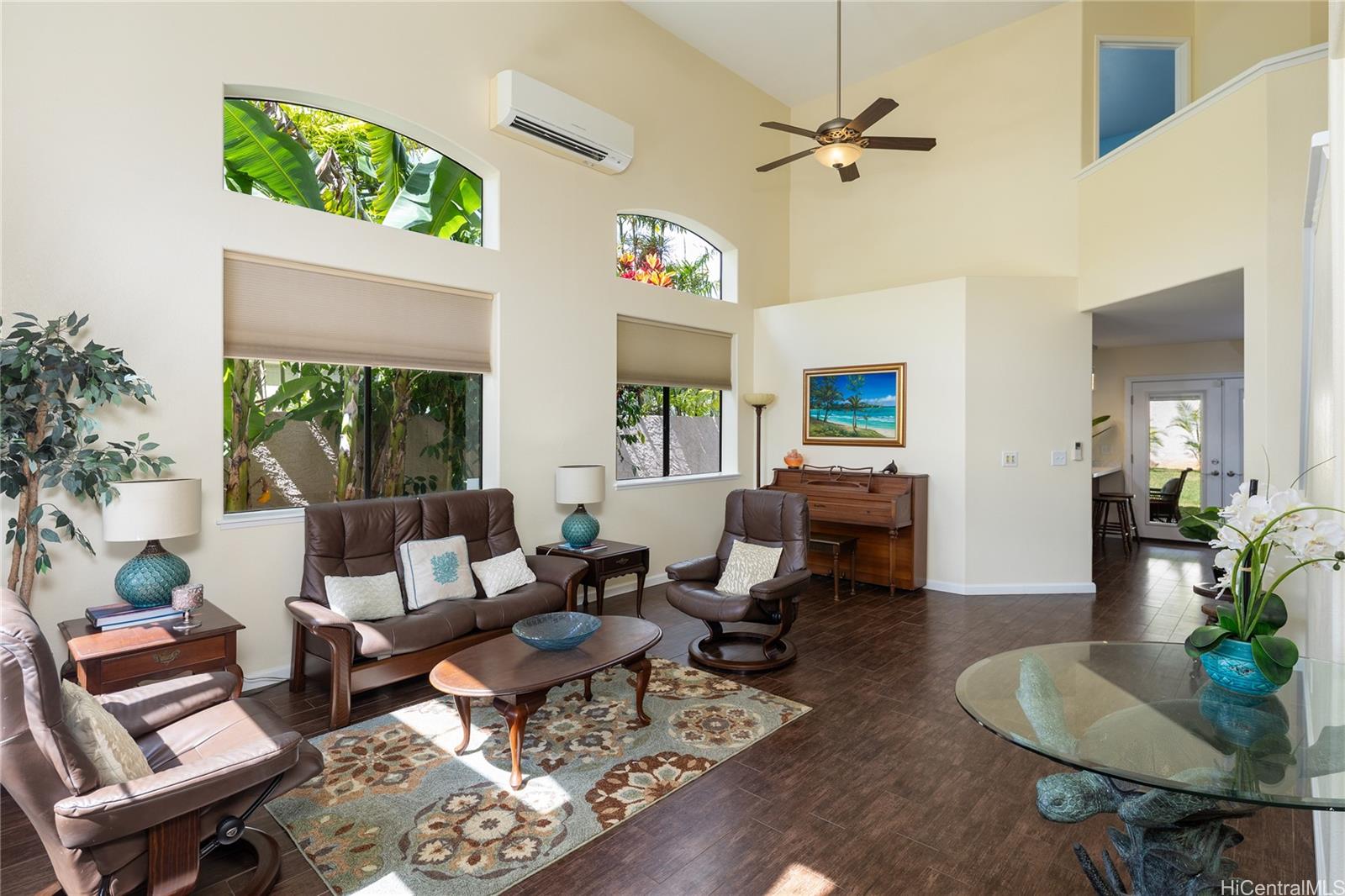 Multi-Gen in Mililani Mauka | Lock-off Style Privacy | Owned Solar (NEM) Flexible living areas can be separated or connected by opening/closing a door. The exceptional addition completed in 2017 and a full home refresh in 2025. Lives as one home or as multiple private living areas with separate entrances. Set on a cul-de-sac with a private, gated yard. The upstairs primary suite has high ceilings, walk in closet, ensuite and a peaceful, private lanai. On the main level an additional primary suite has the flexibility to be it's own suite or attached to the additional studio style living area with a private entrance, bath and convivence area or incorporated in the main house. A private 2nd story 2-bedroom wing includes it's own W/D, frige/snack area. Energy upgrades: 39 owned PV panels with highly coveted NEM program, split A/C in every room, attic fans and insulation throughout. Ample parking. Mililani has 7 rec centers with pools, courts, playgrounds and other amenities. The community enjoys sidewalks, dog friendly vibe, streetlights and nearby shopping, it cant' be beat! With its size, layout upgrades and flexibility this home represents exceptional value, see it before it's gone!