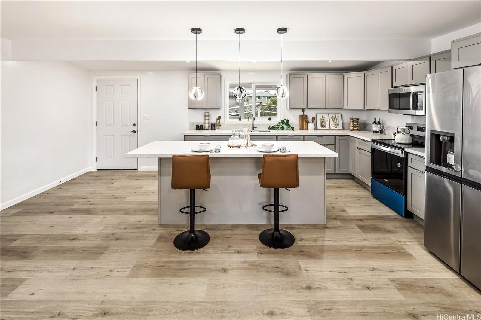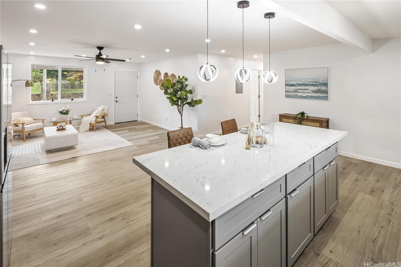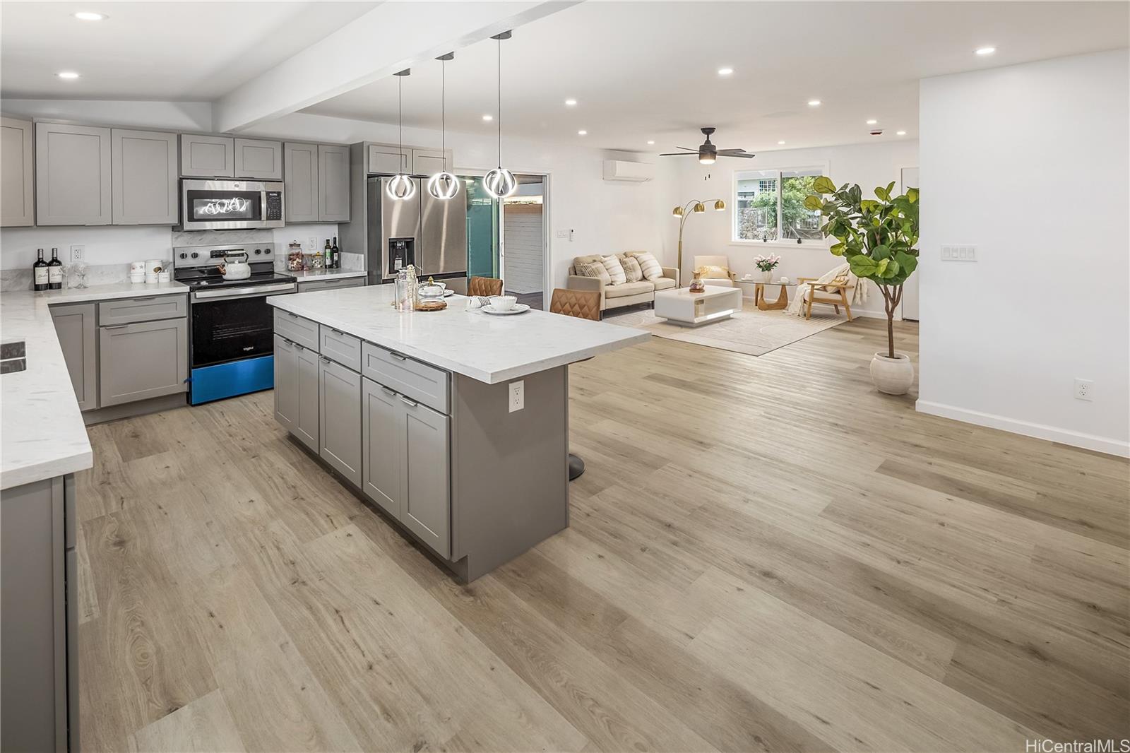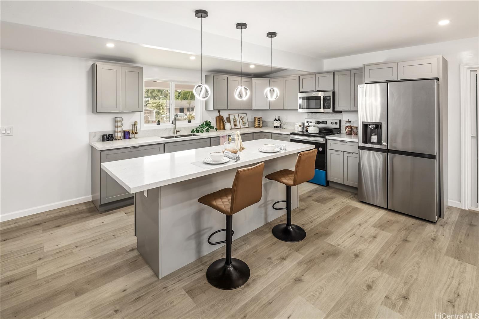 FIRST OPEN HOUSE on March 1,2026 Sunday 2:00 to 5:00 pm. Island living in this beautifully renovated 5-bedroom, 2-bathroom home located in desirable Wahiawa Heights. Offering a spacious living area and a large carport, this residence seamlessly combines comfort and functionality. Situated on a fully enclosed, level 12,590 sq. ft. lot, the property provides exceptional space, privacy, and versatility. Split A/C systems in every room ensure year-round comfort and energy-efficient climate control. The home features luxury vinyl plank flooring throughout and has been thoughtfully upgraded with modern finishes. new plumbing, upgrade electrical, and new roof. The open-concept floor plan is designed for optimal flow, functionality, and everyday living, maximizing the home’s best and highest use. Enjoy ample parking and a generous yard ideal for outdoor living, entertaining, gardening, or future expansion possibilities. Conveniently located near popular hiking trails, dining, schools, Wheeler Army Airfield, Schofield Barracks, and freeway access. Come see this move-in ready home and fall in love with all it has to offer. Outdoor photos of grass are enhanced.