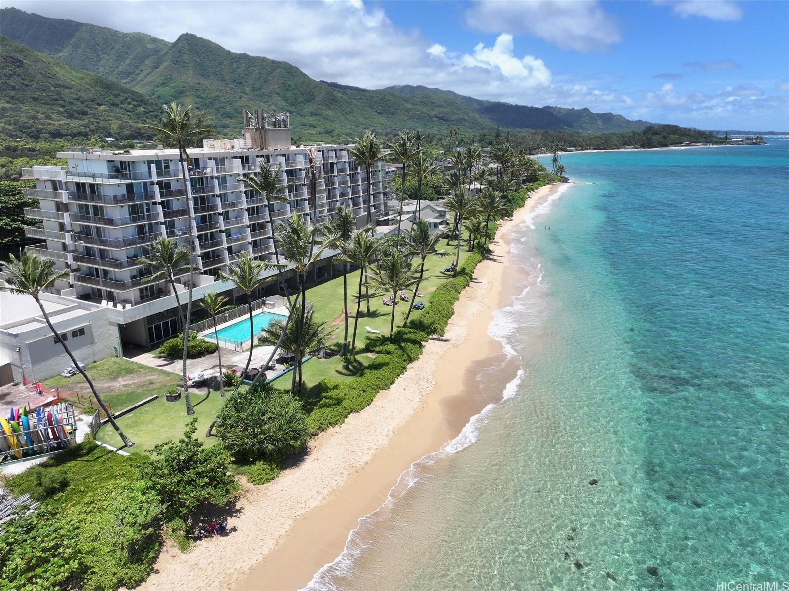 Wake up to the sound of the ocean at Pat's at Punaluu #204. This beachfront 1-bedroom, 1-bath retreat offers stunning coastline and mountain views in a peaceful tropical setting. The unit features a full kitchen, comfortable living space, and dedicated parking, making it ideal for full-time living, a weekend escape, or investment opportunity (buyer to verify rental guidelines). Step directly onto the sandy beach, relax under swaying palms, and enjoy the laid-back lifestyle of Oahu's country coast. Amenities include a pool, oceanfront BBQ area, fitness center, secured entry, and beautifully maintained grounds. Experience true island living away from the crowds while still within reach of town conveniences.