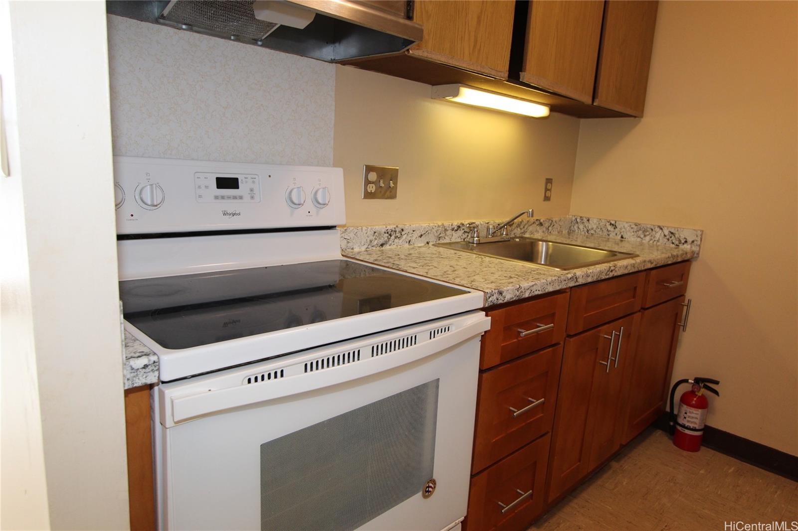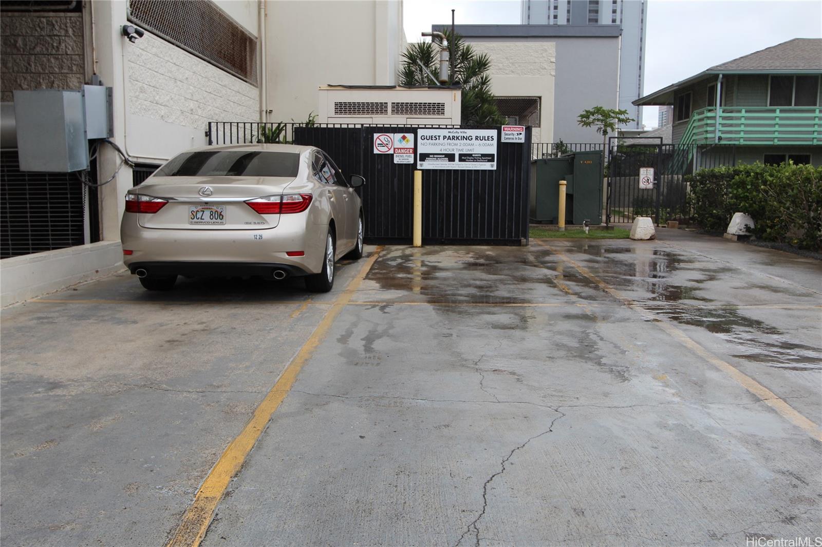 Contractor Special or fairly easy one to tackle for Do-It-Yourselfers! This one bedroom + Den apt has NEWER Plumbing (building was repiped in Nov 2023), is Fully Insured, has NO Litigation & NO Assessments! Fire Alarm System was installed in mid-2024! To be sold "As Is" but has new paint, newer heater, toilet, garbage disposal, range hood, kitchen countertop, S/S kitchen sink & faucet and lower kitchen cabinets. All kitchen and den renovation work was done in Nov-Dec 2023 because of a big leak in a pipe in the lower kitchen cabinet. Shower stall was renovated in Feb 2023. High floor End unit with covered parking stall. Kitchen & bathroom floor tiles are original VA tile. OK to wear shoes in apt when showing but please exercise caution to not disturb the floor tiles. Please note the protective covering over the bathroom broken tile. Very easy to show with short notice.