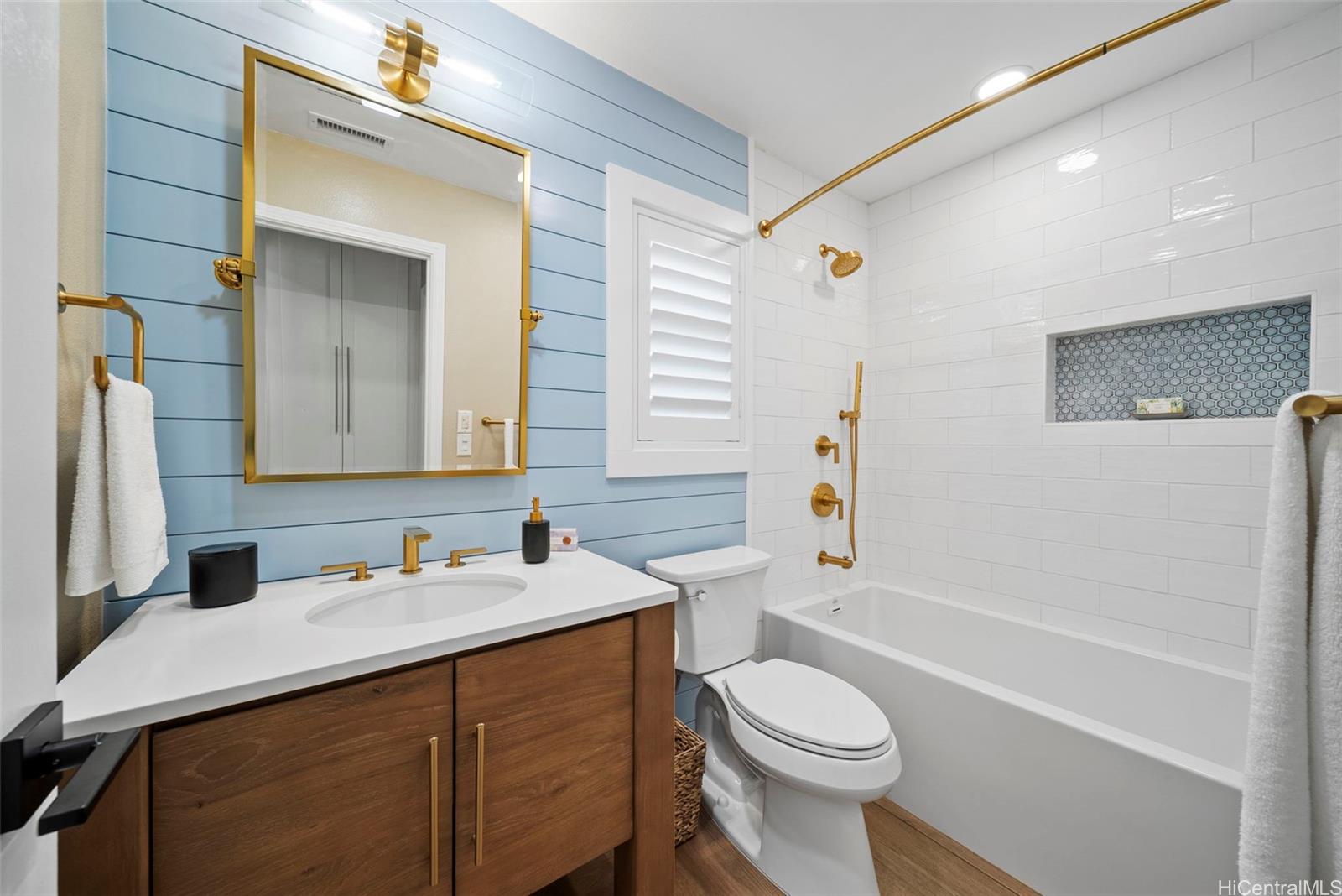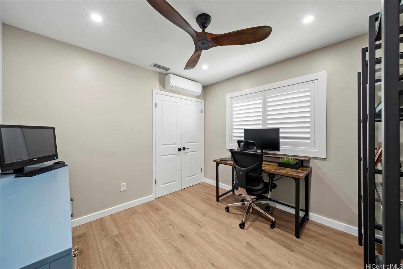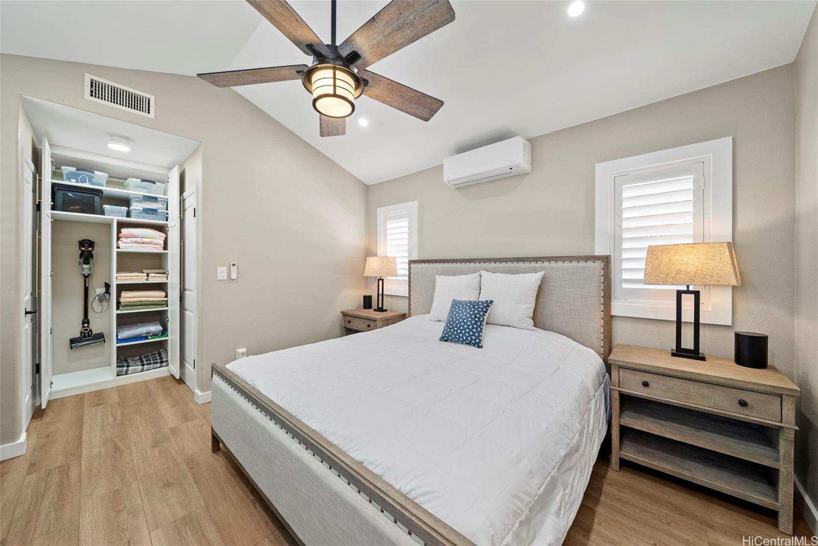 Experience island living in the coveted Hoakalei Kamakana community. This upgraded single-story 3-bedroom, 2-bath residence features extensive enhancements and custom modifications completed since purchase. Designed for comfort, the home showcases wide-plank luxury vinyl flooring, designer lighting, and a bright open-concept layout ideal for entertaining. The chef’s kitchen offers a spacious walk-in pantry, generous storage, and premium Thermador appliances with an induction cooktop. Each bedroom serves as a private retreat with split A/C systems and custom-designed closets. The finished two-car garage includes epoxy flooring, recessed lighting, and an EV charger, plus an additional parking pad for three spaces. Energy-conscious upgrades include 20 leased photovoltaic panels, a Tesla battery, and a solar water heater. Exterior features include full rain gutters and automated front and backyard irrigation. Enjoy resort-style amenities including a pool, fitness center, hot tub, tennis and pickleball courts, with Spectrum cable and internet included. Ideally located minutes from LineUp at Wai Kai and championship golf courses, this home blends luxury, efficiency, and island livingNow
