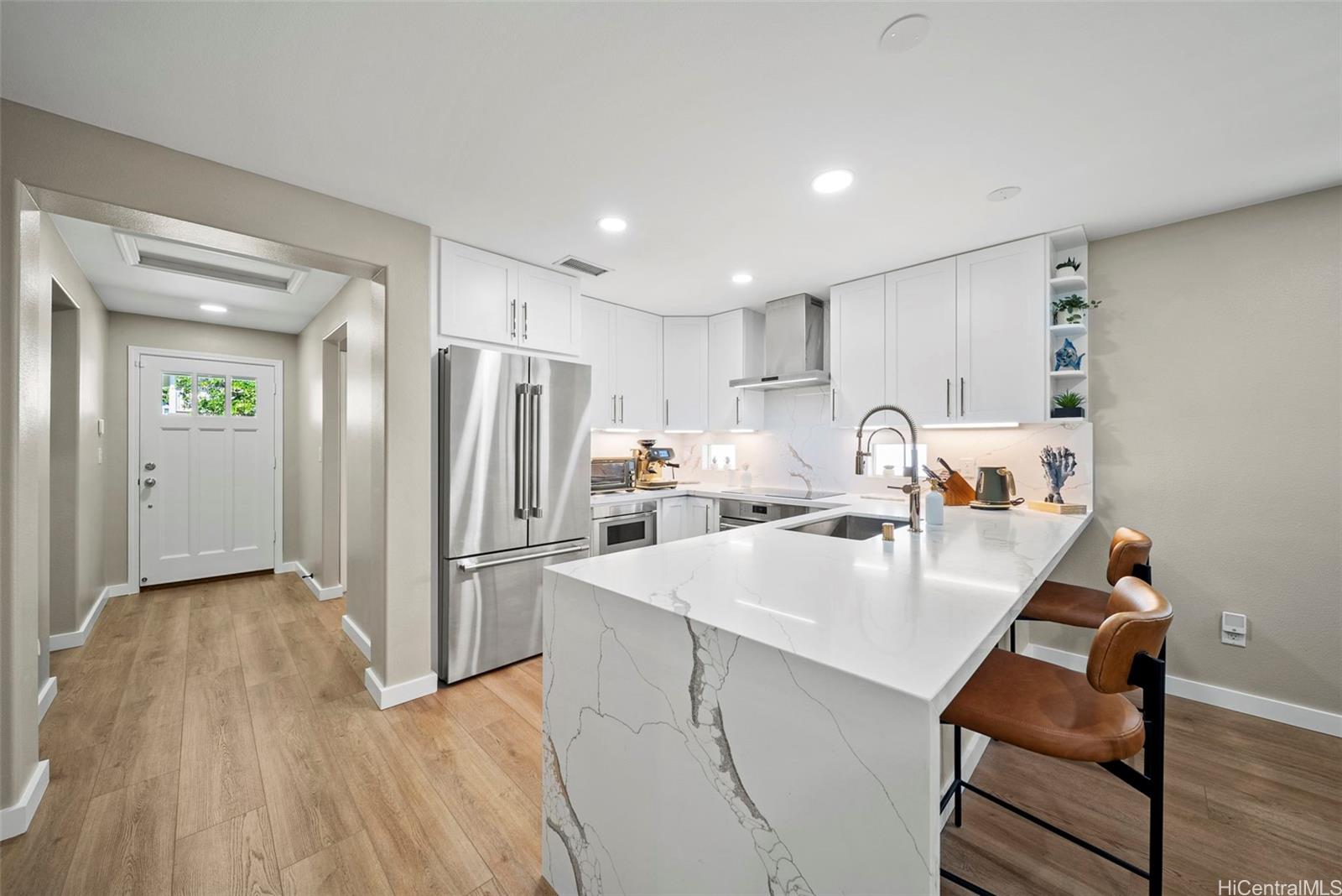 誰もが憧れるホアカレイ・カマカナ・コミュニティで、アイランドライフを満喫してください。この改装済みの平屋建て3ベッドルーム、2バスルームの住宅は、購入後、大規模な改修とカスタム変更が施されています。快適さを追求したこの住宅は、幅広の高級ビニール床、デザイナー照明、そしてエンターテイメントに最適な明るいオープンコンセプトのレイアウトを誇っています。シェフズキッチンには、広々としたウォークインパントリー、たっぷりとした収納スペース、そしてIHクッキングヒーター付きのプレミアムサーモダー家電が備わっています。各ベッドルームは、スプリットエアコンとカスタムデザインのクローゼットを備え、プライベートな隠れ家として機能します。完成した2台用ガレージには、エポキシフローリング、埋め込み式照明、EV充電器に加えて、3台分の追加駐車スペースがあります。エネルギーに配慮したアップグレードには、リースされた20枚の太陽光発電パネル、テスラバッテリー、太陽熱温水器が含まれます。外装には、フルレインゲートと自動化された前庭と裏庭の灌漑が備わっています。プール、フィットネスセンター、ホットタブ、テニスコート、ピックルボールコートなど、リゾートスタイルのアメニティをお楽しみください。Spectrumケーブルとインターネットも含まれています。LineUp at Wai Kaiやチャンピオンシップゴルフコースから数分という理想的な立地にあるこの物件は、贅沢さと効率性、そしてアイランドライフが融合した空間です。