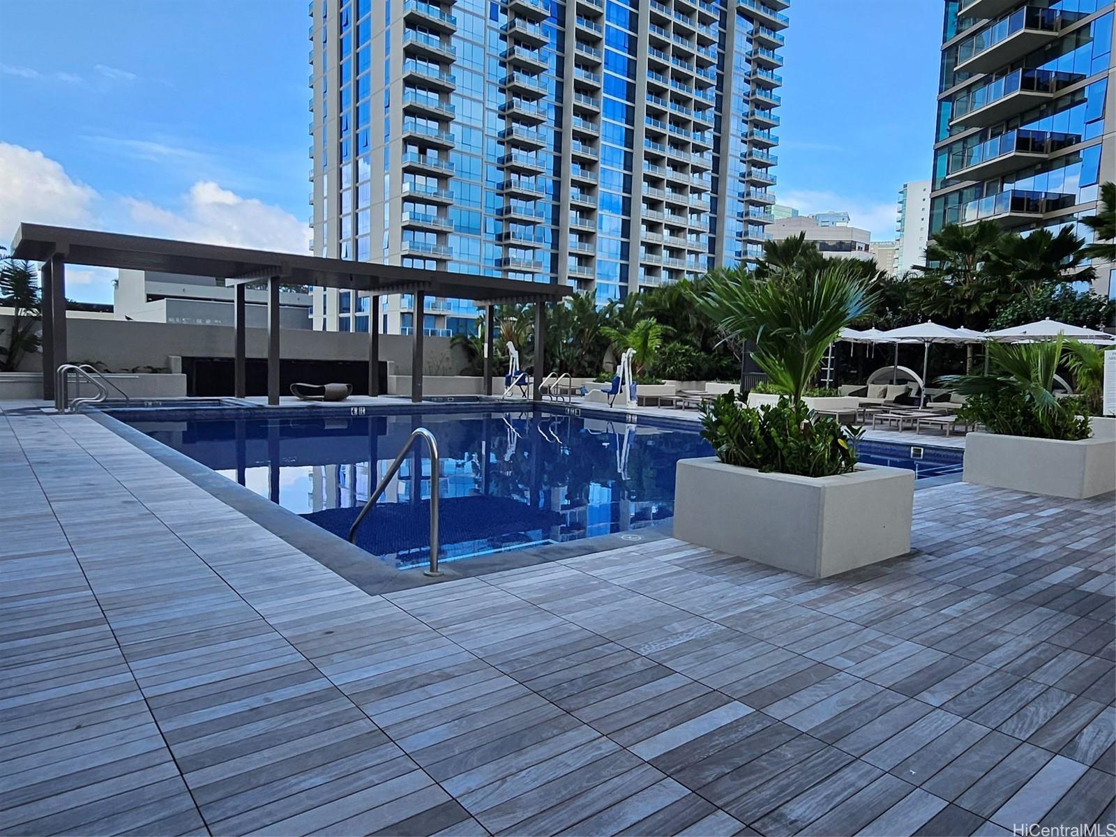 Best priced 2 bedroom/2 full bath in Sky Ala Moana West offering resort style amenities with 24hr security, secured parking entry, lots of guest parking and Pet friendly! This fabulous apartment is the original owner with the condition better than new! Special features include 2 side by side parking stalls with an E.V. charger and storage locker 5173L! Unit is located in the corner with only two neighbors which allows for privacy yet takes full advantage of the Mountain and Ocean views. The main bedroom boasts a large walk-in closet with both relaxing mountain and Ocean Views. The second bedroom also offers Ocean views. The two baths include Toto washlet toilets. The Floor to ceiling windows allow for maximum light and open feeling. Kitchen open to the living area and features Bosch appliances, and split Air condition units in the living area and bedrooms. Pet policy: no more than 2 and no larger than 60lbs each.