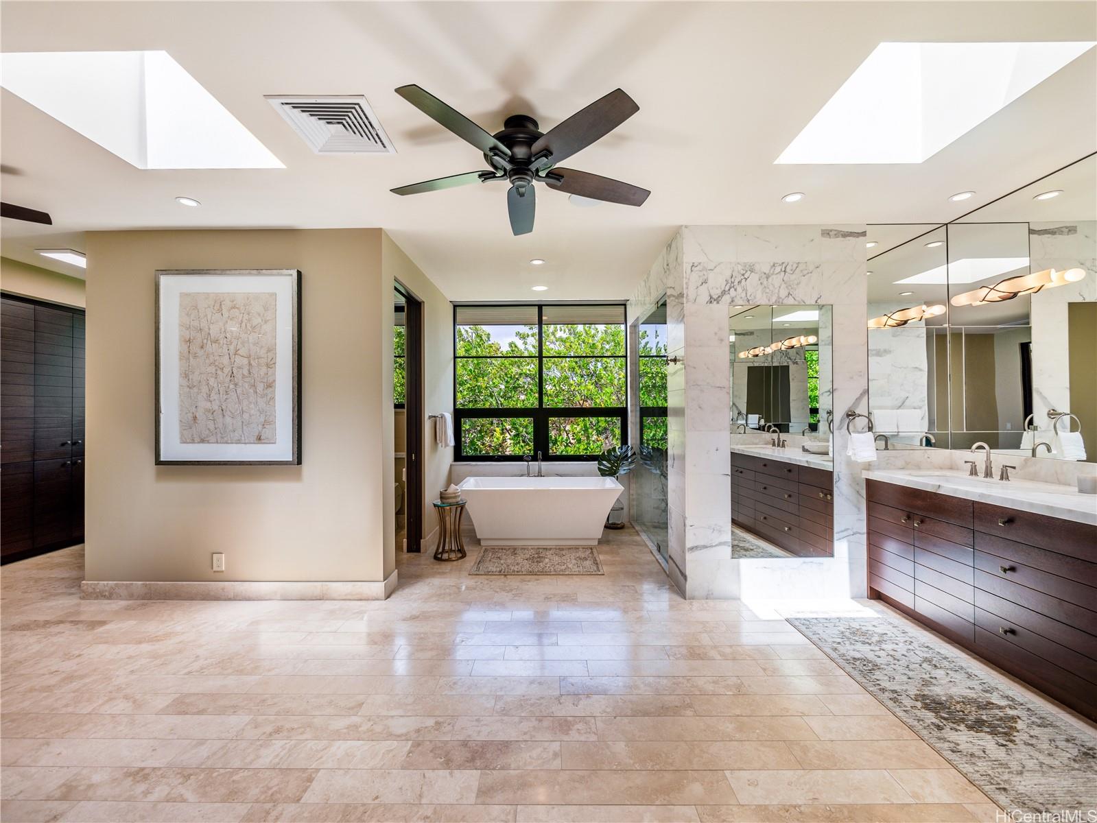 Step into a realm where modern architectural brilliance meets the captivating allure of Oceanfront living! Perfectly poised between Kailua & Lanikai Beach, this oceanfront masterpiece is a rare & exquisite retreat. Wake up to mesmerizing sunrises over sparkling turquoise waters as sea turtles glide by & kite surfers float across the horizon. Sweeping ocean & mountain views envelop every corner of the home with an open-concept design, soaring ceilings & abundant natural light. The chef’s kitchen showcases incredible craftsmanship w/ custom mahogany cabinetry, custom doors, a bespoke range hood & top-tier appliances from SubZero, Wolf, Bosch & Miele. The private spa courtyard enveloped by lush tropical greenery, enhances the sense of tranquility, while finishes like travertine plank flooring, warm veined marble countertops & crushed coral walls exude timeless sophistication. Modern conveniences like automated window shades, Toto bidets, water filtration, backup generator, video security, Sonos sound & climate-control make for effortless living. Enjoy premier golf, dining & fitness at Mid-Pacific Country Club, with easy access to HNL International airport, downtown Honolulu & Waikiki.