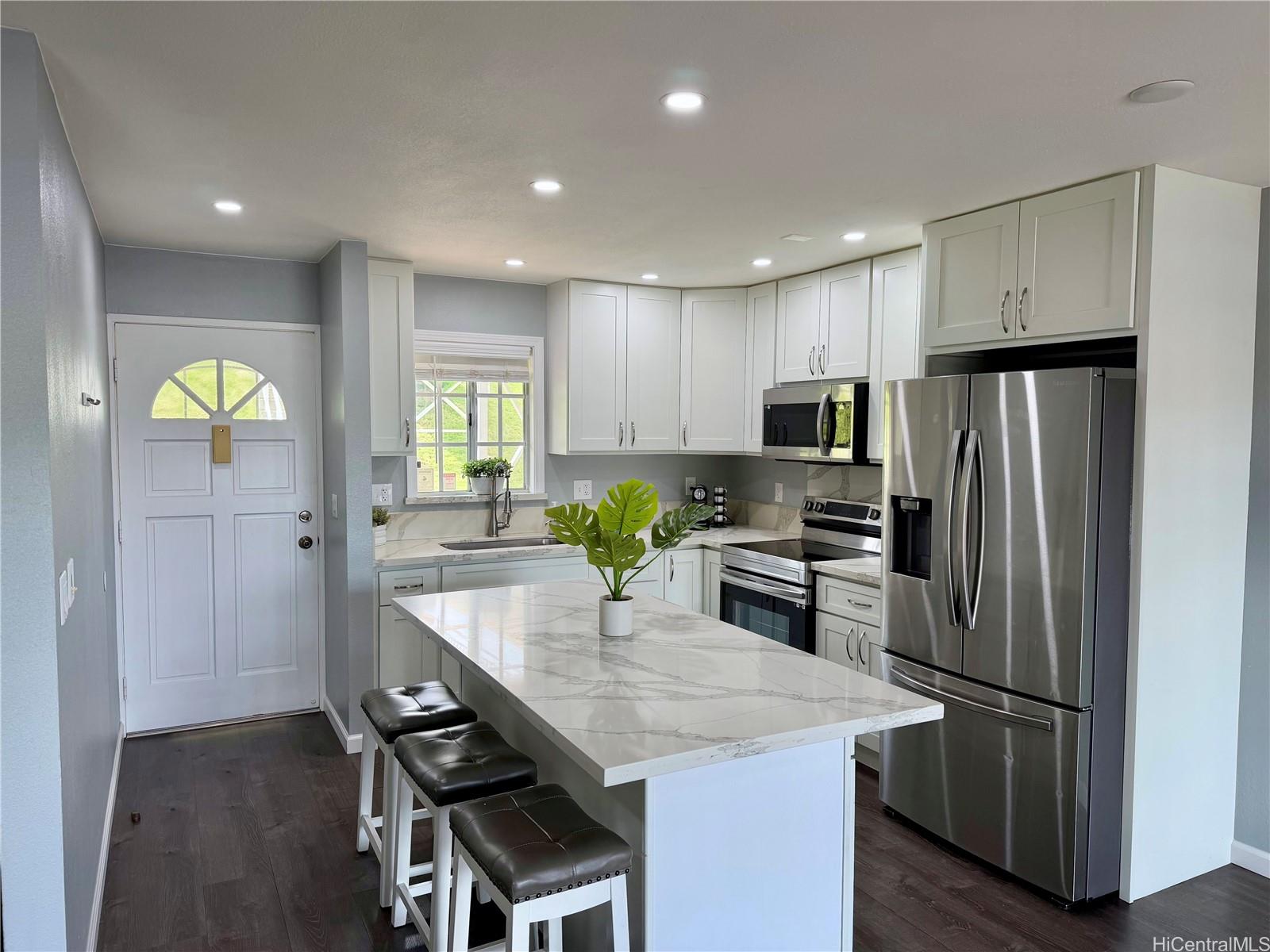 美しく改装された2ベッドルーム/2バスルームの平屋コンドミニアム。専用の小さなゲート付き庭と収納スペースを備えています。この団地内の多くの物件とは異なり、この居心地の良い住宅は、オリジナルのフロアプランから、より現代的な「オープンコンセプト」デザインへと改修され、ダイニング、エンターテイメント、宿題、食事の準備に最適なアイランドキッチンを備えています。電気代を抑えるため、ネットメータリング機能付きの8パネル太陽光発電(PV)システムを導入しています。希少な物件です!洗濯機/乾燥機付き(約1年前)。主寝室には窓用エアコン。屋根付き駐車スペースが2台分あります。