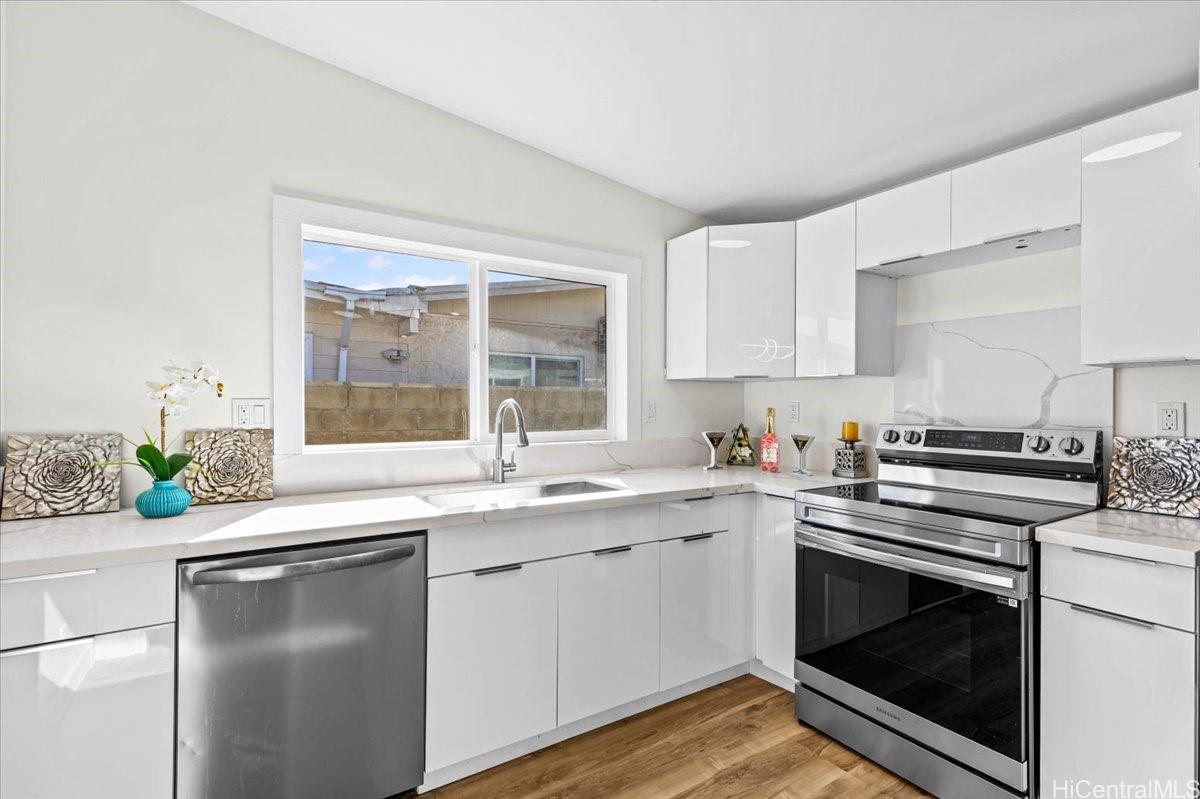 This property features upgraded electrical, a brand new roof, and new flooring throughout & Appliances. Also all windows are upgraded. This versatile 5-bedroom, 2-bath home is thoughtfully divided into a fully renovated 3-bedroom/1-bath front unit (renovated 2025–2026) and a newly built 2-bedroom/1-bath back unit with its own private entrance. Perfect opportunity to live in one and rent out the other. No HOA or maintenance fees. Large, level lot with many possibilities. An excellent value you won’t want to miss! Seller is completing