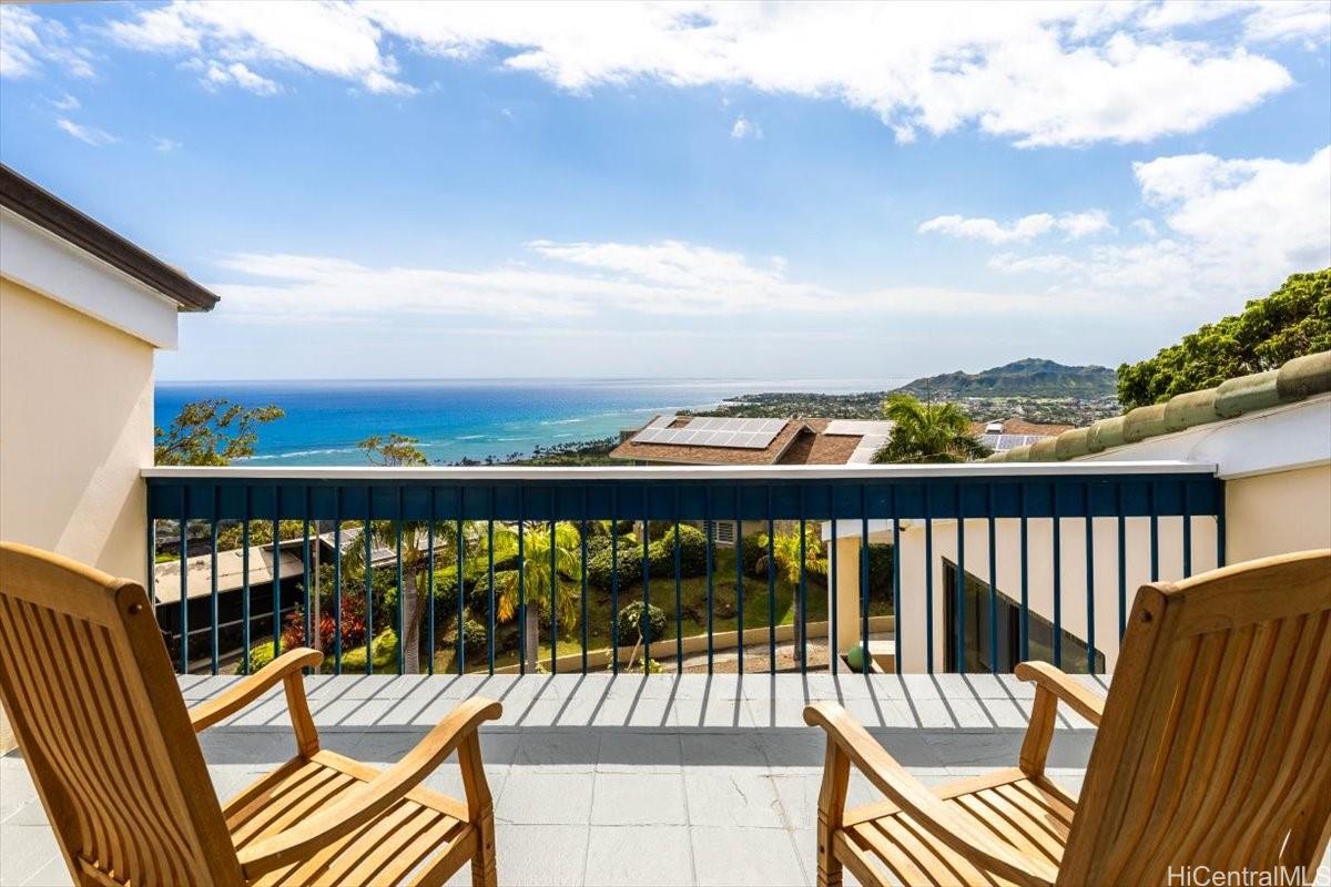 Stunning Ocean and Diamond Head views highlight this residence located halfway up the prestigious and highly sought after Waialae Iki ridge. Offering 5bedrooms, 5 baths plus a den/office. This spacious home features 3 primary suites with breathtaking views. The thoughtful layout includes 2 primary suites on the upper level, 2 additional bedrooms and a den/office on the main level and a private in-law suite with it's own separate entrance, wet bar and living area. With nearly 4,200 sqft of interior space, this home represents exceptional value. Enjoy the convenience to Kahala Mall, Waialae Country Club, Kahala resorts, shops and restaurants, all just minutes away.
