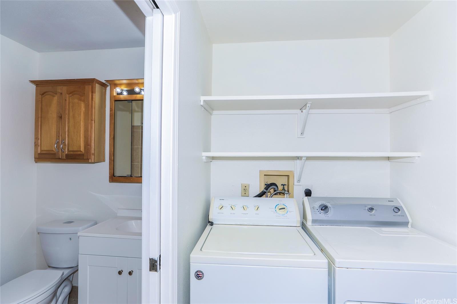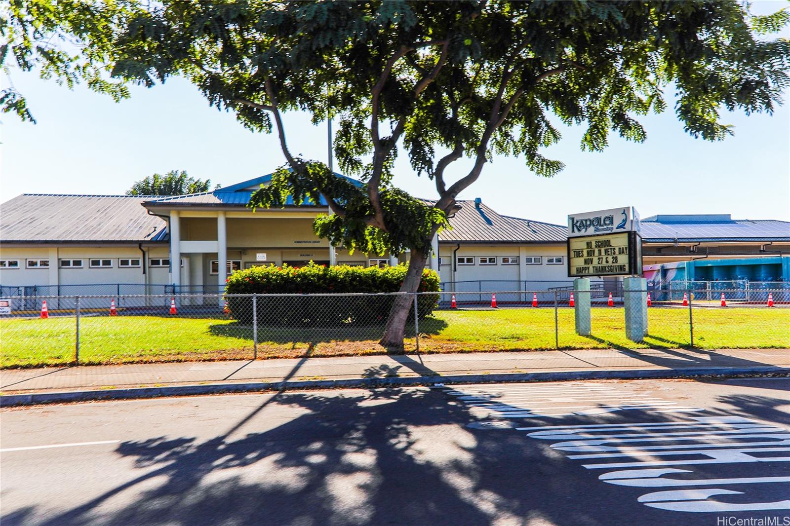 Desirable corner-end unit offering privacy and comfort in this 1BR/1BA home with TWO parking stalls—ideal for a first-time buyer or those looking to downsize. Bordered by a beautifully manicured greenbelt, the home enjoys added privacy with no neighboring unit on one side and sliding door access to an expansive grassy area that allows for a wonderful cross-breeze. Freshly painted and featuring a kitchen island not commonly found in other units, plus AC in both the living room and bedroom and a full-size washer and dryer. Conveniently located next to Kapolei Elementary School and on the same street as the Villages of Kapolei Recreation & Aquatic Center, featuring a lap pool, kiddie pool, baby pool with shaded seating, and recreation rooms available for events. Just minutes from Kapolei Shopping Center, Ka Makana Ali‘i, Kapolei Commons (Target, Ross, Marshalls, Ulta Beauty, TJ Maxx), Costco, UH West O‘ahu, the Skyline rail, and H-1 freeway access. Call today to schedule a showing!