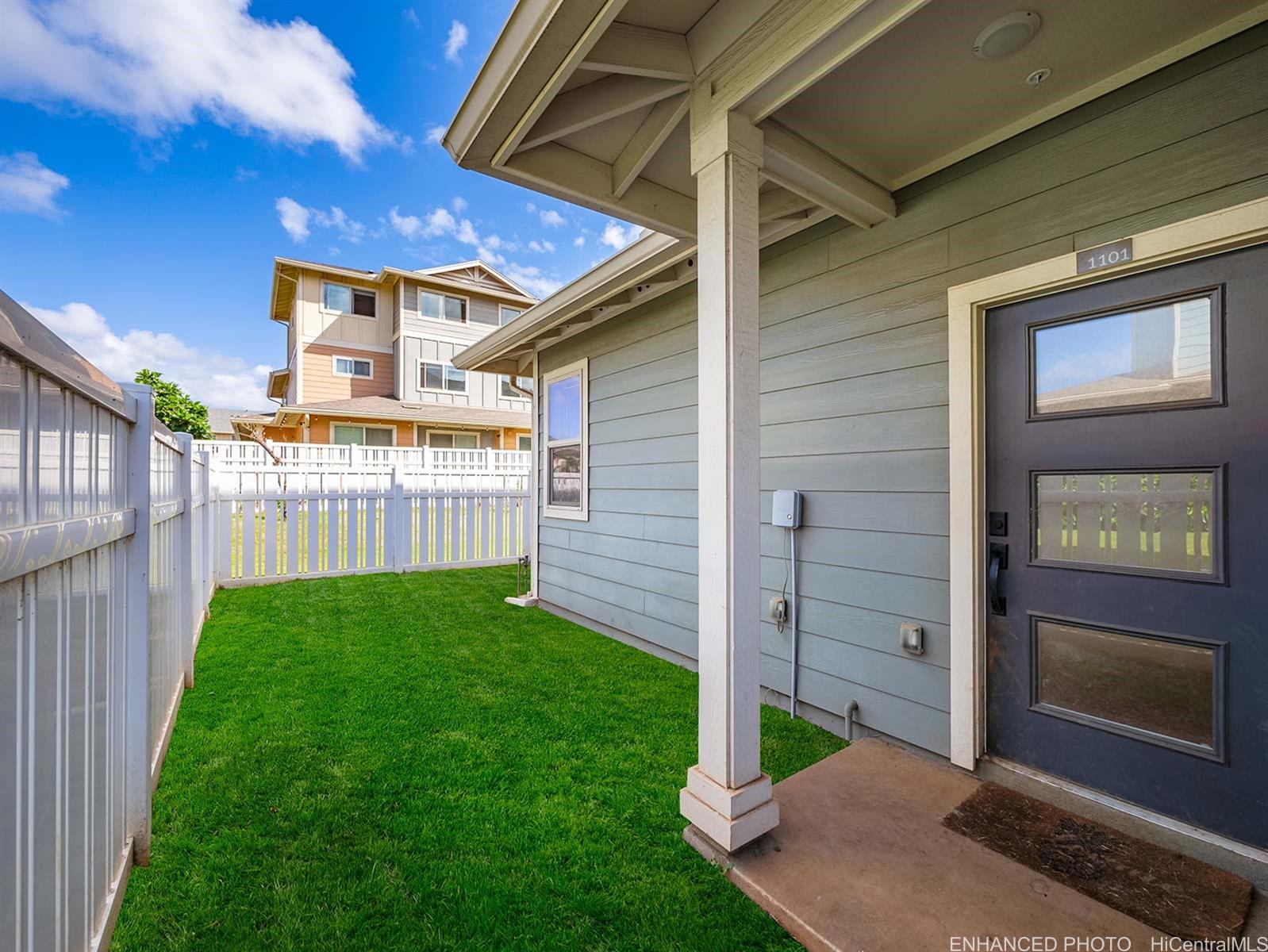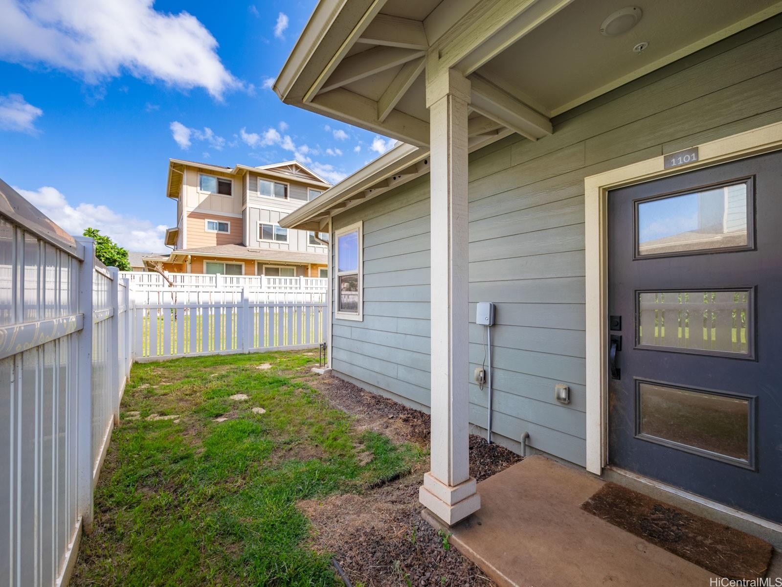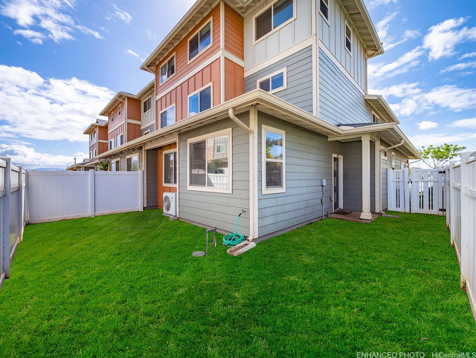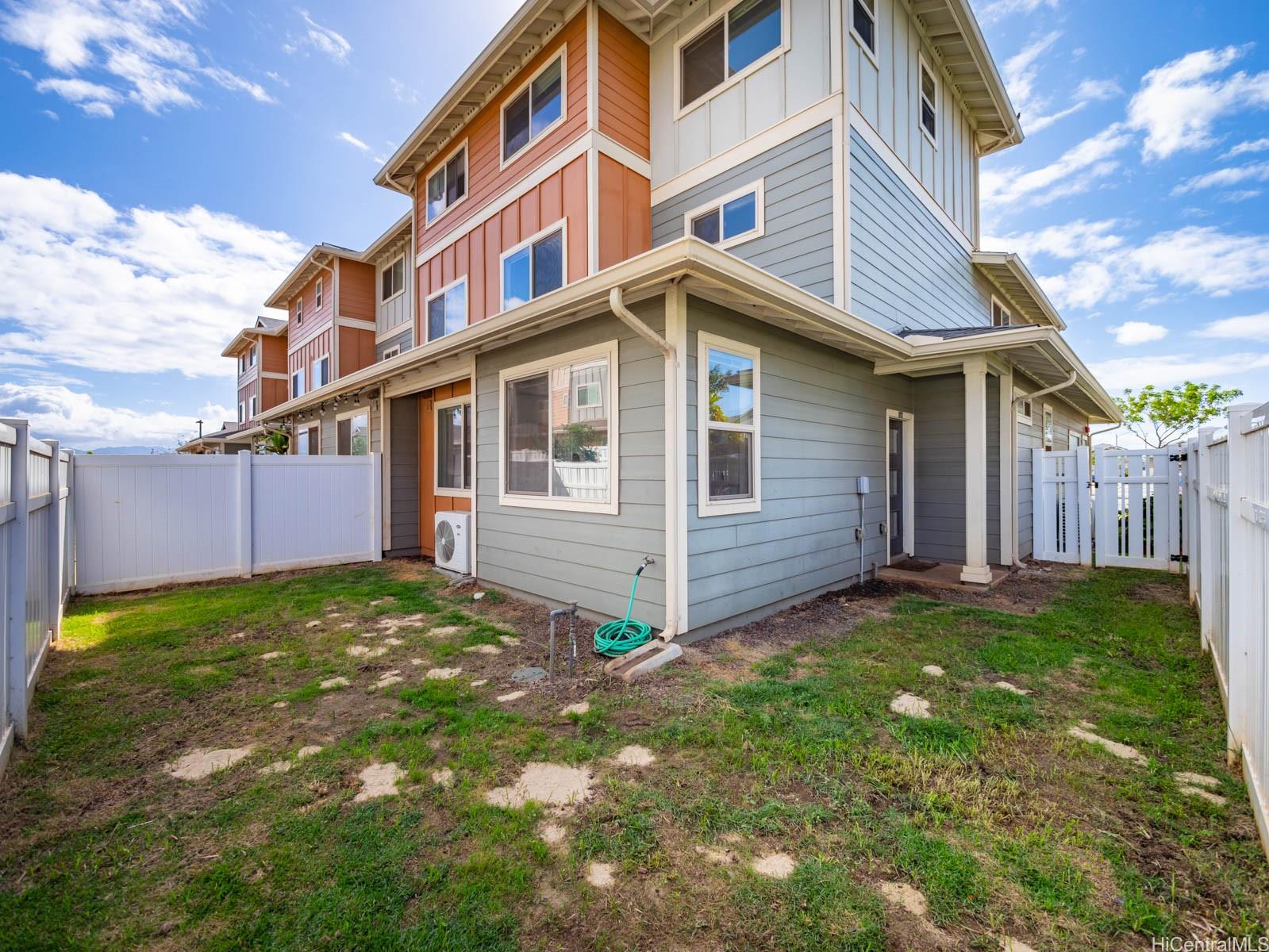 Welcome to this charming 2-bedroom 2-bath single level townhome nestled in a vibrant community of Ho'opili. The open floor plan seamlessly connects the living room, dining, and kitchen areas providing an ideal layout for both relaxation and entertaining. The well appointed kitchen features modern appliances, plenty of counter space and ample storage making meal preparation a breeze. Retreat to the spacious primary bedroom complete with a private en-suite bathroom and walk-in closet for added convenience and privacy. The second bedroom offers flexibility for guests, a home office, or whatever suits your lifestyle needs. Outside, you will find your own private fenced in yard, a perfect place for your furry friend or fun kids play space. All this just minutes away from all conveniences such as a rail, UH West campus, Ka Makana Ali’i mall, stores, restaurants, beach and so much more. Come see it today!