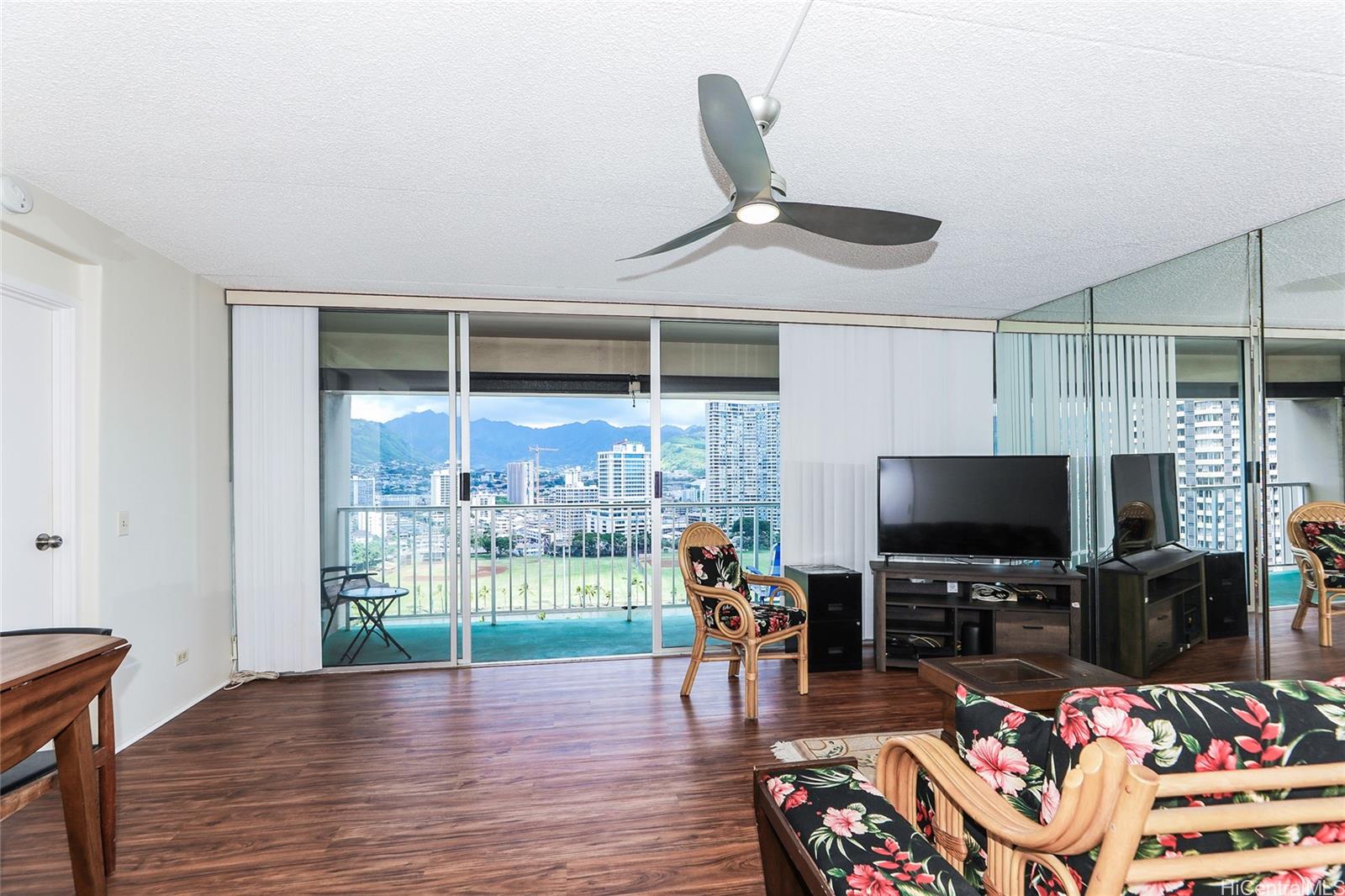 Welcome to Keoni Ana, a popular and well-managed condominium community at the gateway to Waikiki. This large 1-bedroom, 1-bath home offers a thoughtfully designed floor plan with an extra-spacious living room, full kitchen, generous bedroom, and a relaxing lanai with beautiful Ala Wai and mountain views.