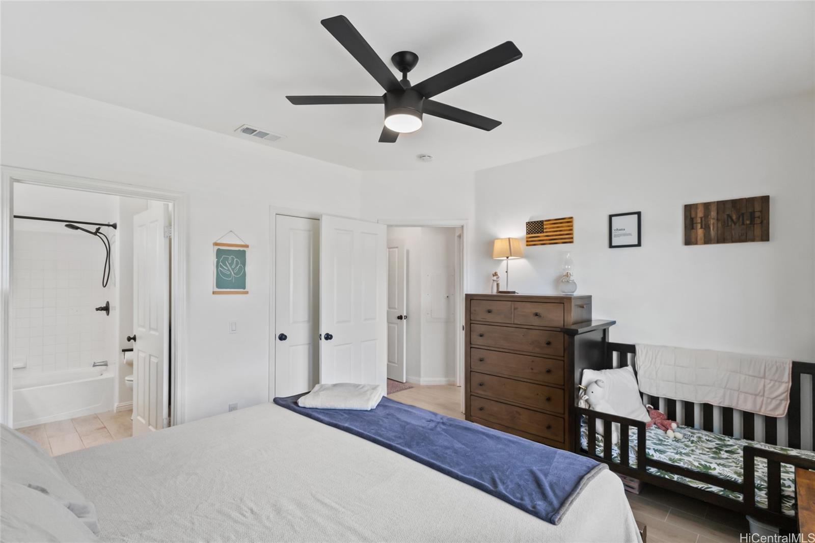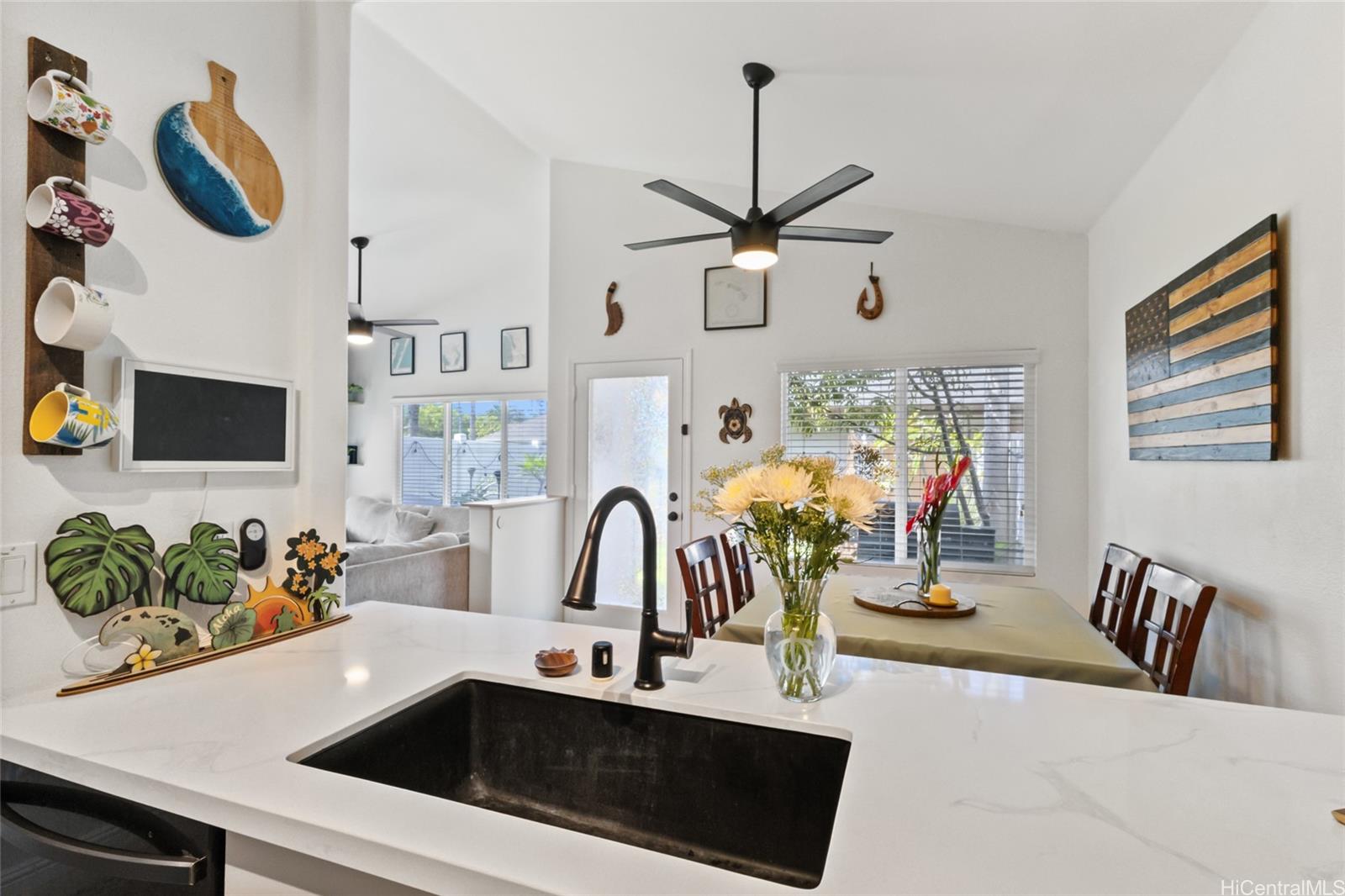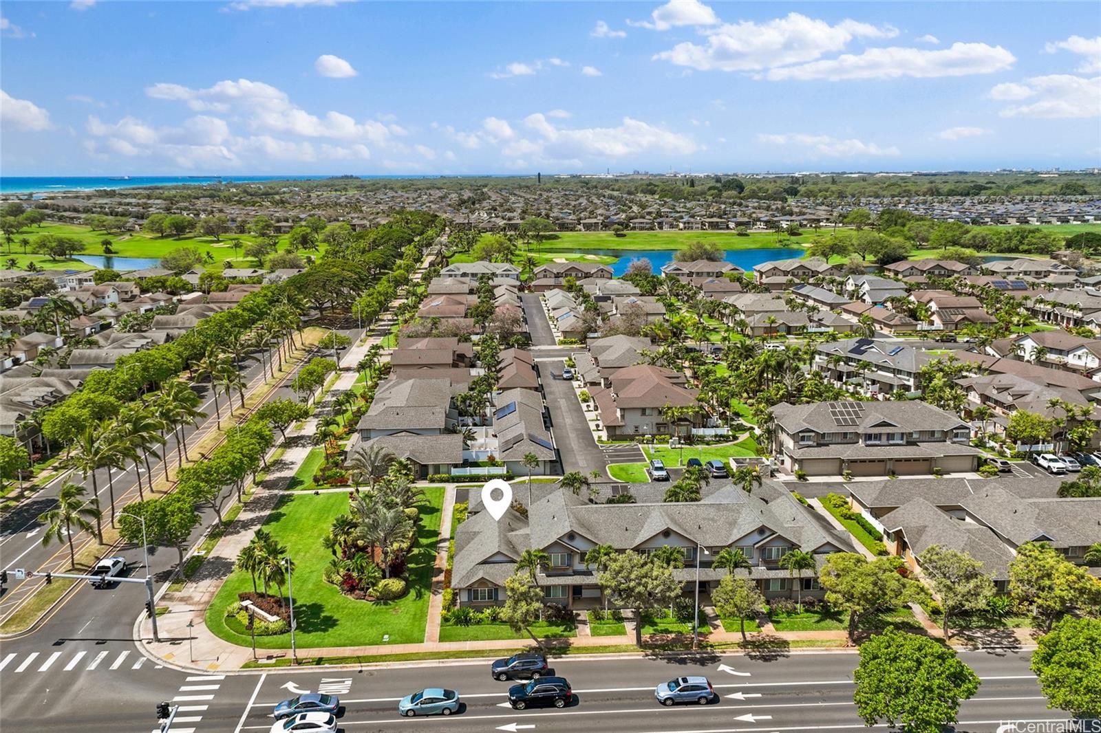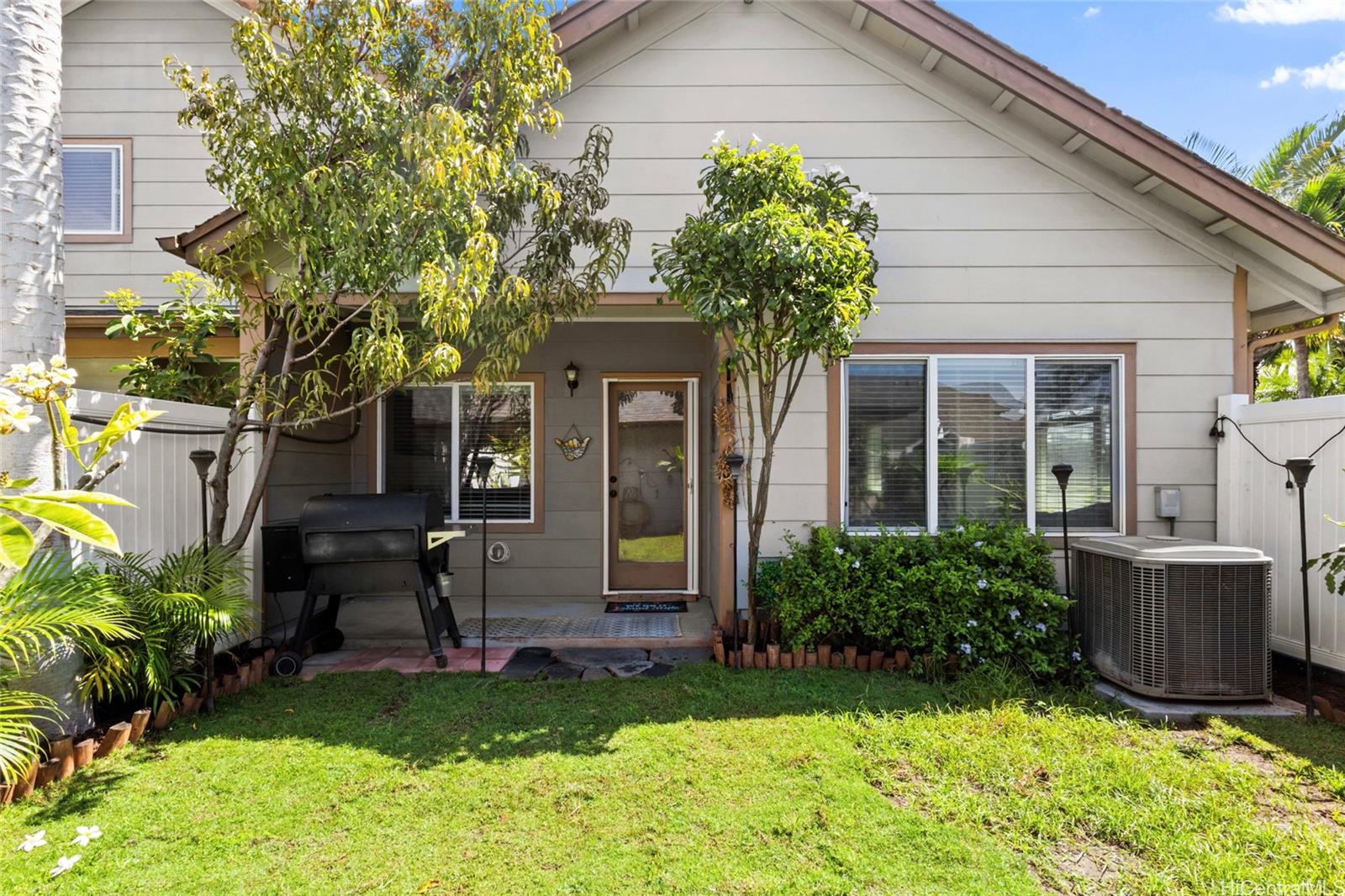 VA ASSUMABLE RATE AT 3.25%! Welcome to Townhomes at Fairways Edge! Immediately as you walk into this 3 bed, 2 bath home you see the breathtaking vaulted ceilings, tasteful modern updates, and bright, natural light. With a spacious living room and dedicated dining space, this home is perfect for entertaining guests. Right off the living area, you have a flex space that can be used to your discretion as a play area, office or an extra bedroom. Step into the kitchen that boasts a beautiful backsplash and plenty of storage space. Enjoy the other spacious 2 bedrooms and beautiful updated bathrooms all on the first floor. Cool off in your home with a central AC or step outside into your backyard oasis with amazing fruit trees and other plants, plenty of space for backyard BBQing, gardening, or playing with children or pets. There is also a wonderful outdoor shower to rinse off after a visit to the beach. This association also has plenty of amenities with a pool, BBQ, clubhouse, and more. Conveniently located just off Kapolei Pkwy, you are within just a few minutes of plenty of shopping, golf courses, schools, dining, and the beach. Check this home out before it’s gone!