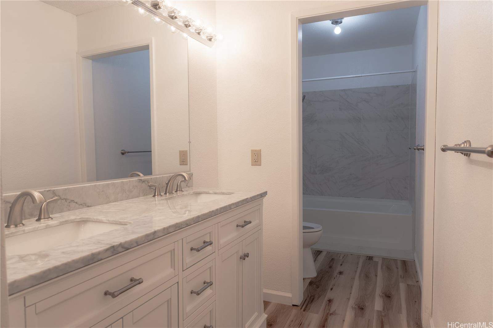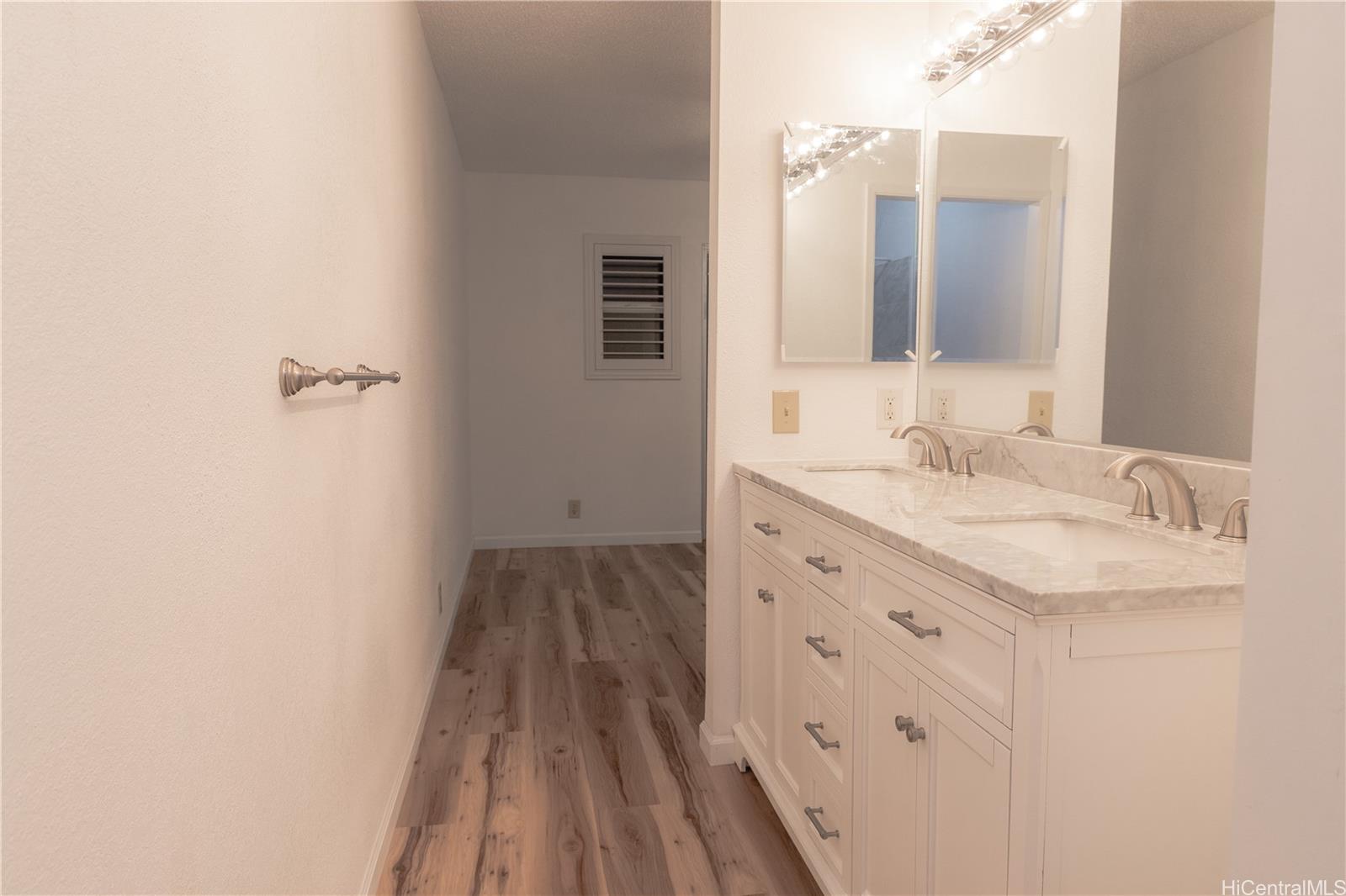 Beautiful 3 bedroom, 2 bath single level home located in the highly desired neighborhood of Waipio Gentry.. The owned photovoltaic panels makes it energy efficient saving you on your electric bill. Newer roof installed in 2024. Recently installed luxury vinyl planks in the living room, hallway and bedrooms. In the primary bedroom bathroom, new vanity with dual sinks. The vaulted ceilings in the kitchen, and dining area create an open, airy atmosphere and makes the home feel spacious and inviting. The living room features elegant window shutters. The Seller is offering a $10,000 credit towards the repair/replacement of the 4 split air conditioners. Just minutes away from Costco, Foodland, restaurants, school, Waikele Outlet and freeway entry. Hurry! This won't last long!