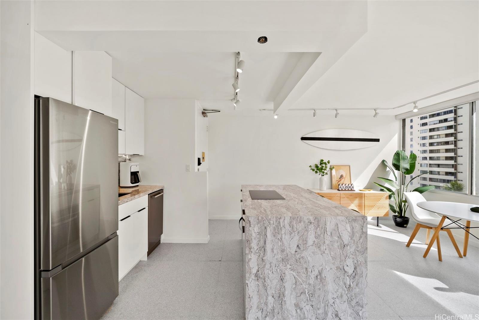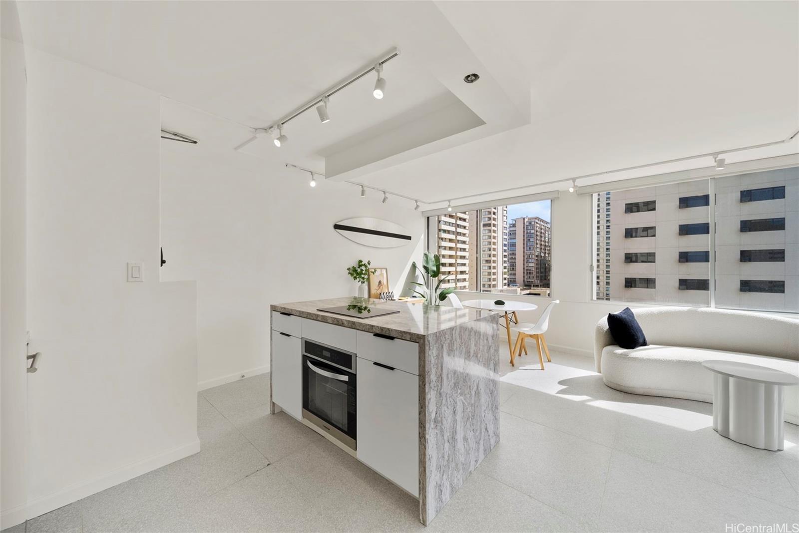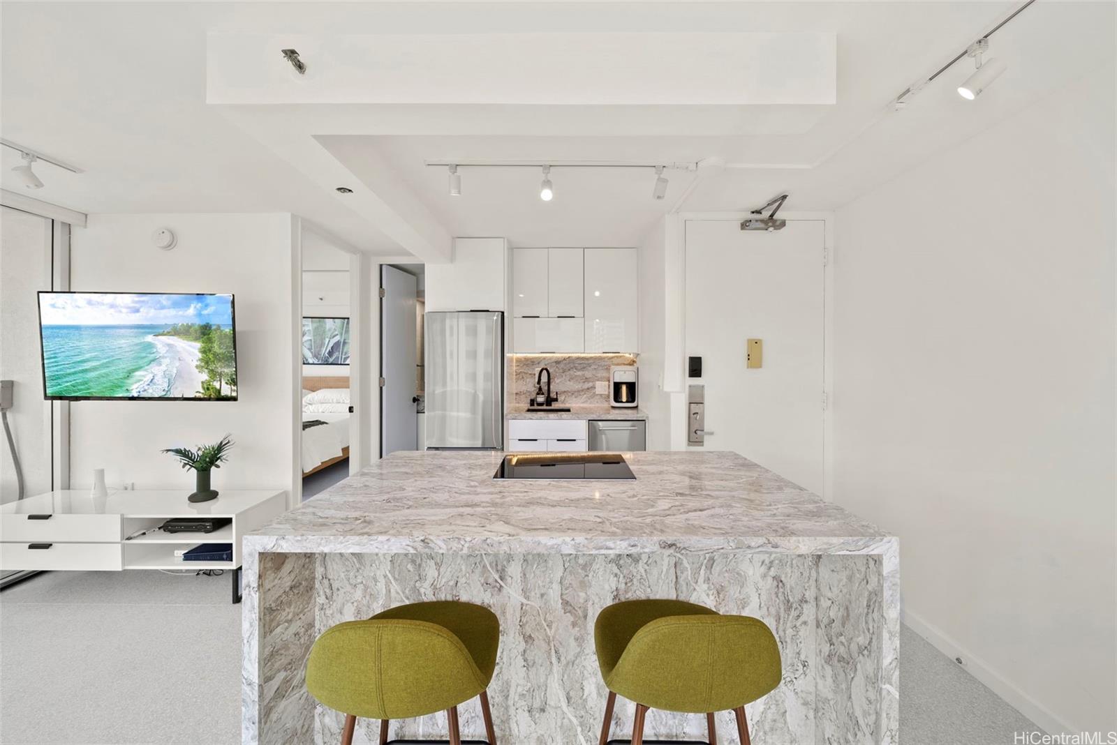 Exceptionally remodeled 1 bedroom unit just a few minutes walk to the famous Waikiki Beach. This unit is an active vacation rental unit renting on Airbnb with high reviews. Suited for investors that want income from Day 1. Seller self manages and open to managing the unit for the new owner. Unit completed a full renovation in 2023. Some upgrades include ceramic tile flooring, European style kitchen, floating custom one piece quartz vanity/sink, and luxury Quartz counters. Lighting/electrical and plumbing has been upgraded as well. Split AC has also been installed along with new windows. All furnishings are included in the sale. Pacific Monarch is arguably one of the best vacation rental building in Hawaii. Building amenities have been recently renovated as well. Building offers the Highest Rooftop Pool, jacuzzi, sauna, and recreation area with BBQ grills. The building also has one of the larger parking garages in Waikiki and guests and owners are able to use the garage with a reasonable fee. Located in the center of Waikiki. Few minutes walking distance to all the action Waikiki has to offer plus being just a few minutes from the beautiful Waikiki Beach. This is a special unit!