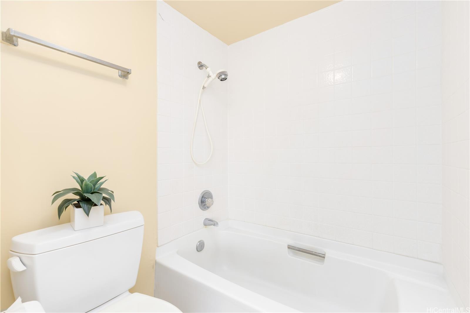 The lanai next to the living room has been enclosed, and the guest bedroom wall was removed to expand the living space, resulting in an open and airy layout. The primary bedroom is equipped with its own private lanai.
